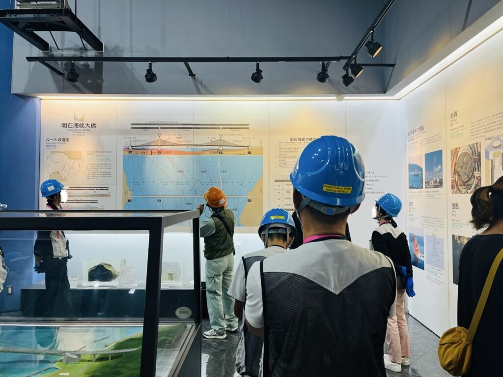 接著,我們一行人戴著安全帽,移步至「橋的科學館」的展示室。在這裡,工作人員深入淺出地為我們介紹大橋的建造歷史與各項創新工程技術,讓我們對接下來的參觀更加期待。