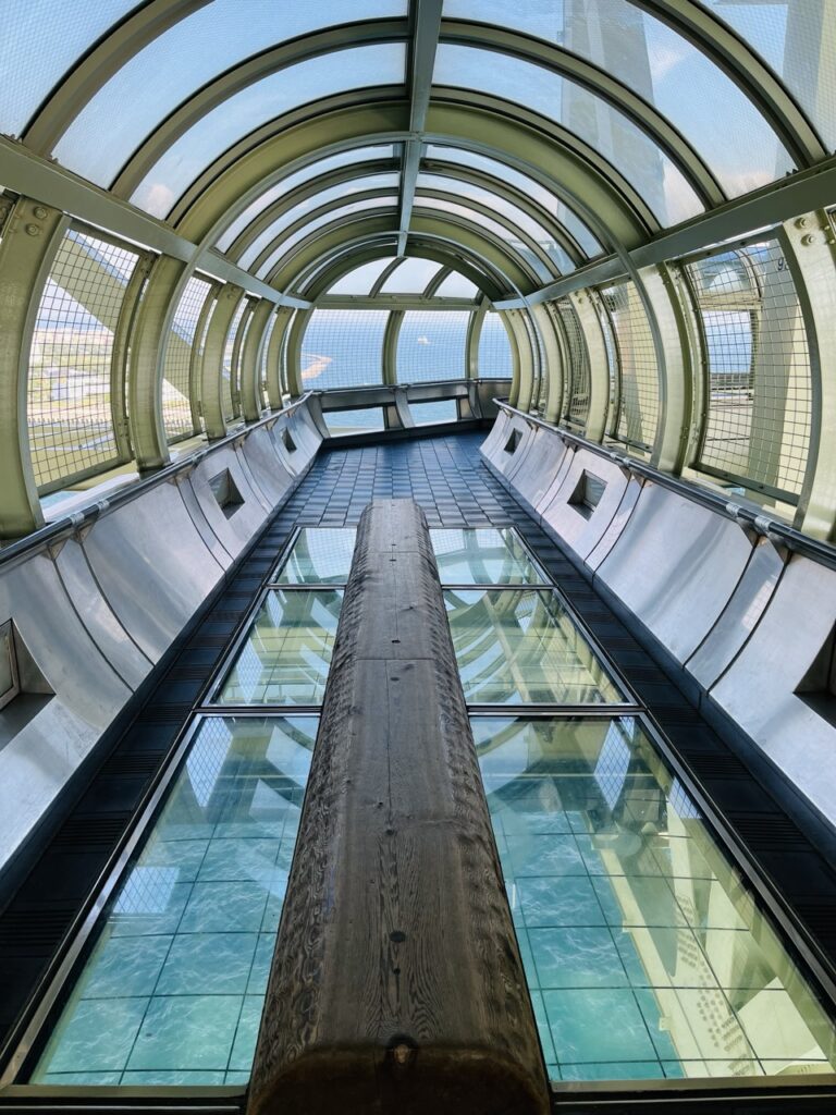 腳下是帶有縫隙的網狀鋼板,透過縫隙望去,能看見海面在陽光照耀下閃閃發亮,宛如鋪展的碎銀。能踏上這條平日嚴禁進入的秘密通道,本身就是一次難能可貴的體驗。