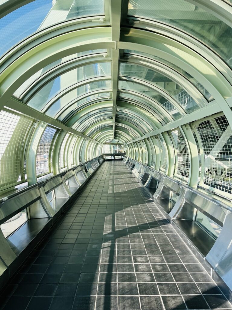 搭乘電梯僅需 2 分鐘,就能抵達約 300 公尺高(相當於 98 層樓高度)的主塔頂端。雖然高度驚人,但因為圍欄設計完善,我自己感覺並不太可怕,反而像是在飛機上欣賞風景般愜意。