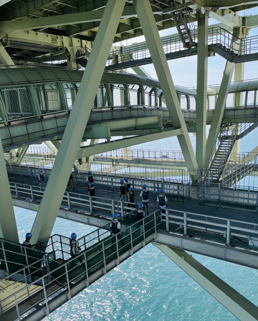 除了在遠處觀賞大橋壯麗,旅人還可以參加「明石海峽大橋塔頂導覽體驗(明石海峡大橋塔頂体験ブリッジワールド)」,從另一個視角感受大橋的靈魂。