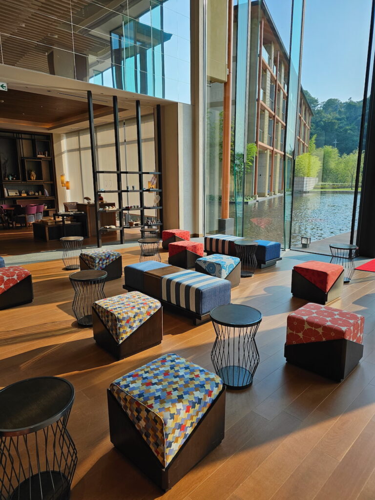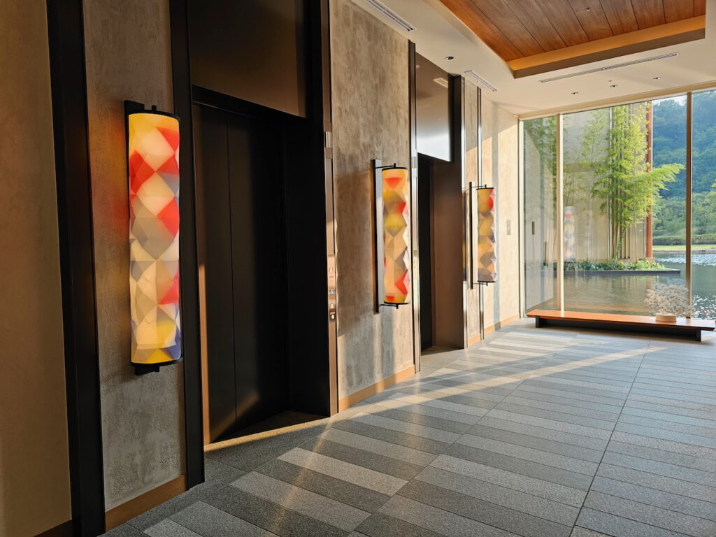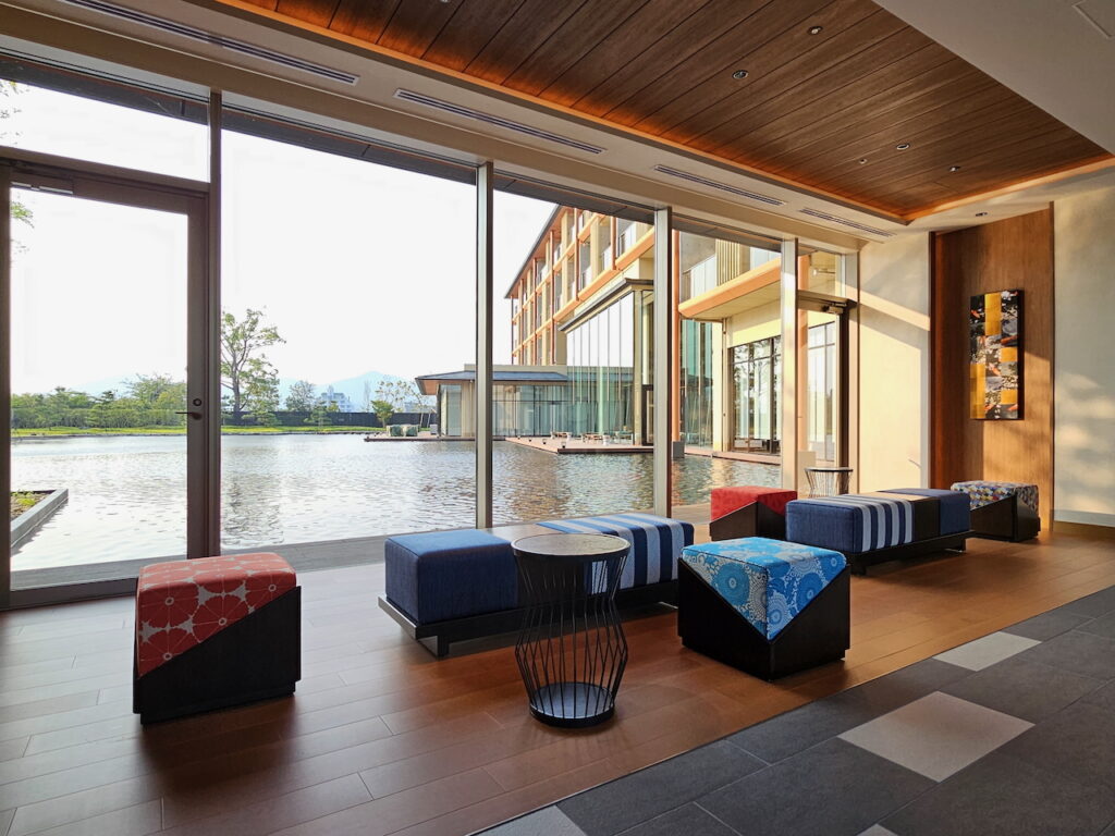 踏進飯店大廳,迎接我的是一整面落地窗,透過窗外寧靜的庭園水池映照犬山城城影,宛如一幅動態的歷史畫卷徐徐展開。這棟於2022年3月開幕的旅宿,由國際設計事務所 HBA(Hirsch Bedner Associates)操刀打造,設計靈感深植於犬山在地文化,巧妙融合了庭園、茶室與祭典圖騰意象,將當地文化以當代設計語彙呈現於公共空間。