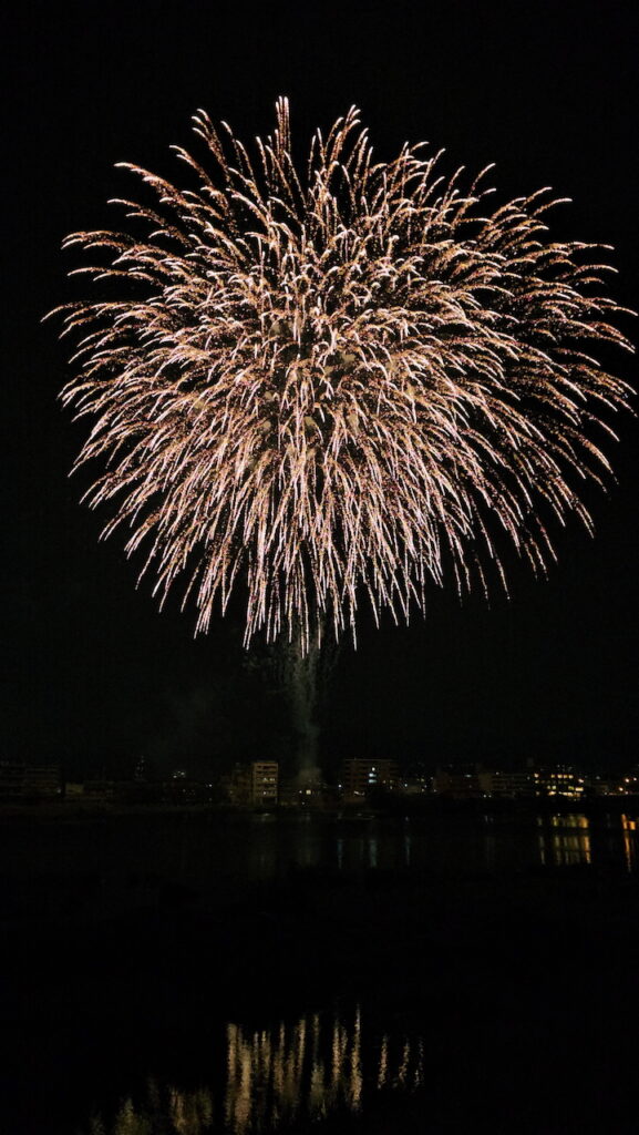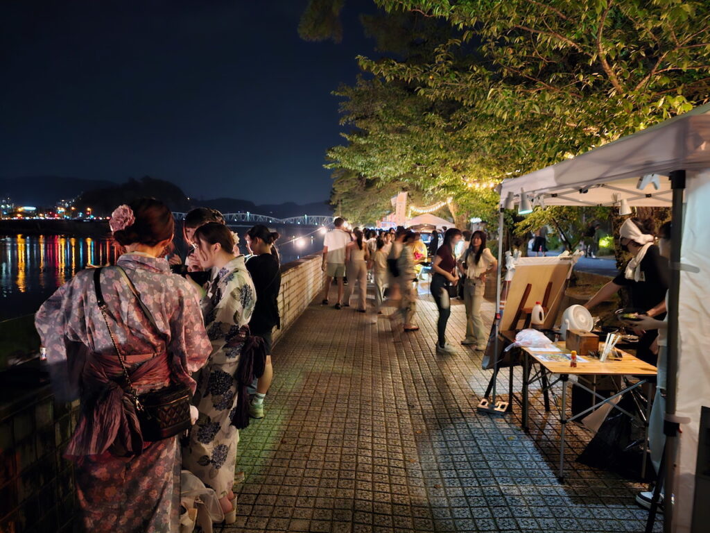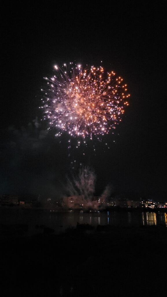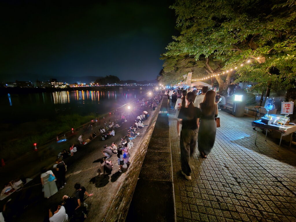 到訪之際,恰好遇上每年都會舉辦的犬山木曾川夏日連日花火秀。2025年是從8月1日至10日。活動期間,木曾川畔每晚八點準時施放約10分鐘的煙火,為夏夜點綴華麗光彩。雖然時間短,規模不大,但不減精采度。花火的最大魅力,在於背景的國寶「犬山城」。點燈下的古城與川面倒映的煙火交相輝映,營造出濃濃的日本夏日風情。