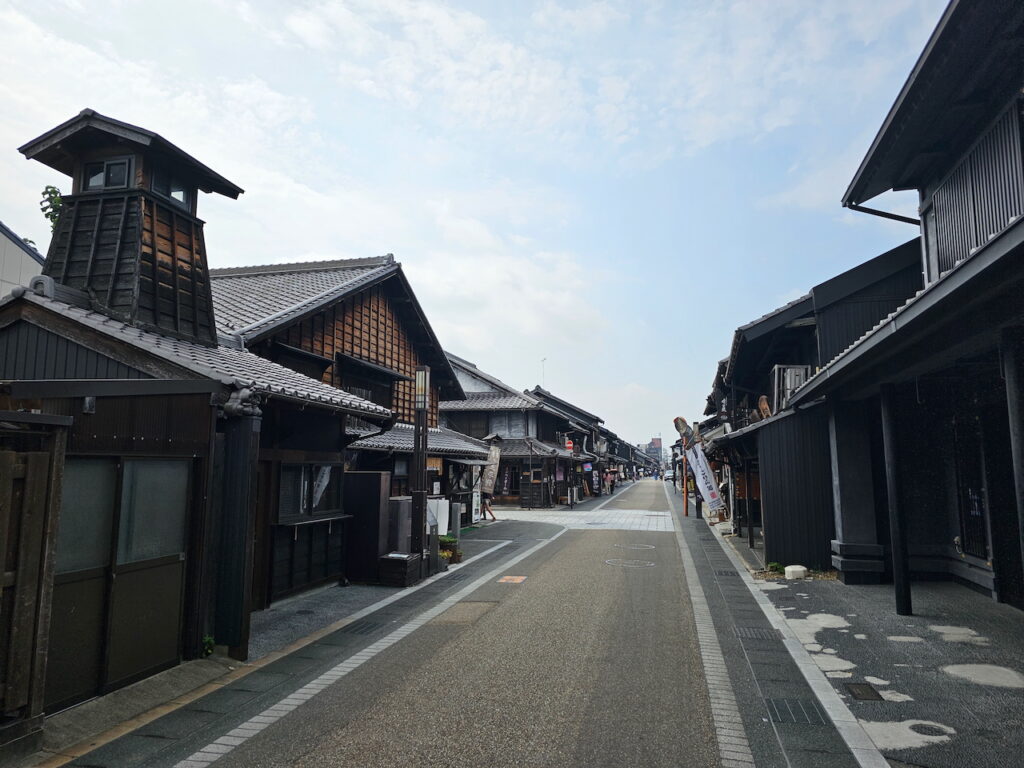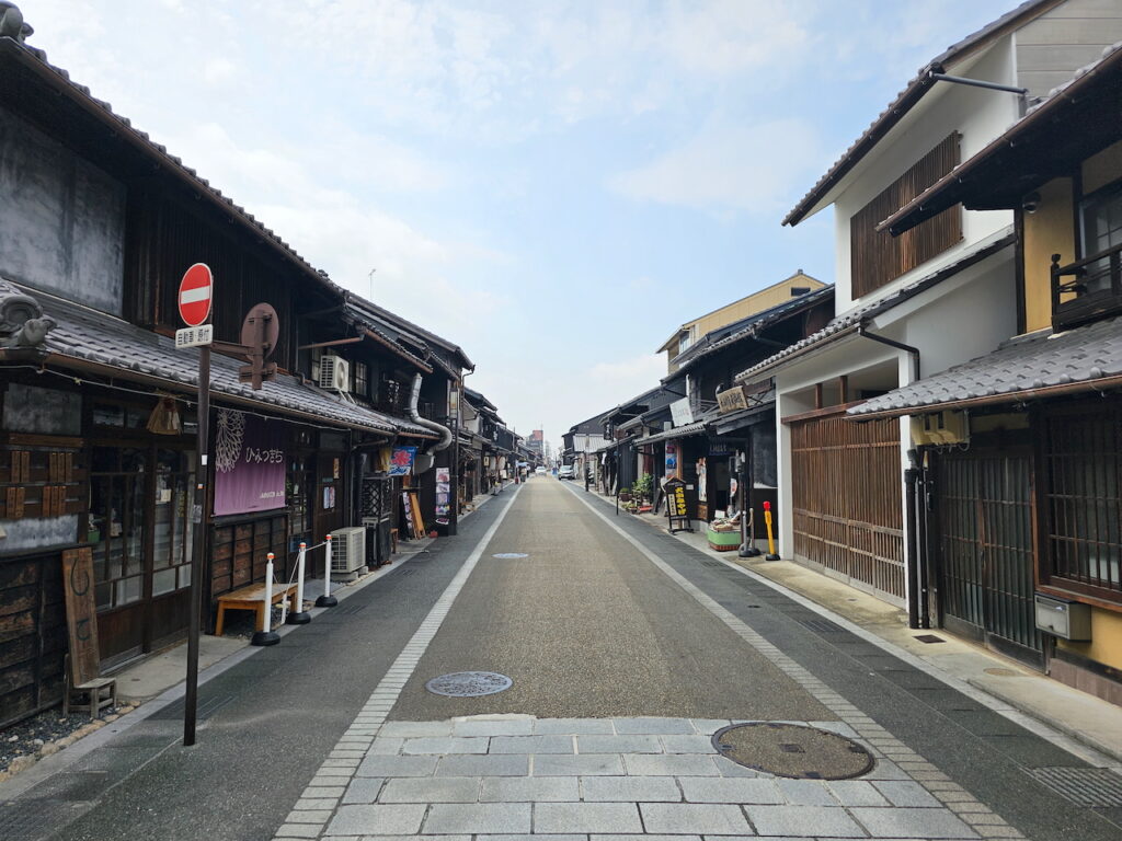 犬山城下町,昔日曾以犬山城為核心,周圍圍繞著護城河與城郭,構成完整的江戶城下聚落。如今雖已不見昔日城牆與運河的風貌,街道兩旁仍可見一棟棟舊時代的木造町家,彷彿時間在這裡按下了暫停鍵。