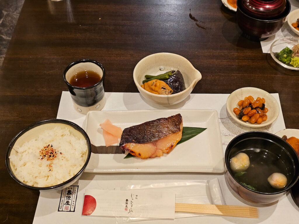 人氣料理「壽俵屋定食(壽俵屋ごはん)」是許多旅人與在地人推薦的首選。以酒粕與味醂粕醃漬的鮭魚或銀鱈,經燒烤後鹹香鮮嫩,搭配多款自家漬物與和風小菜,吃來簡單卻層次豐富,令人回味。
