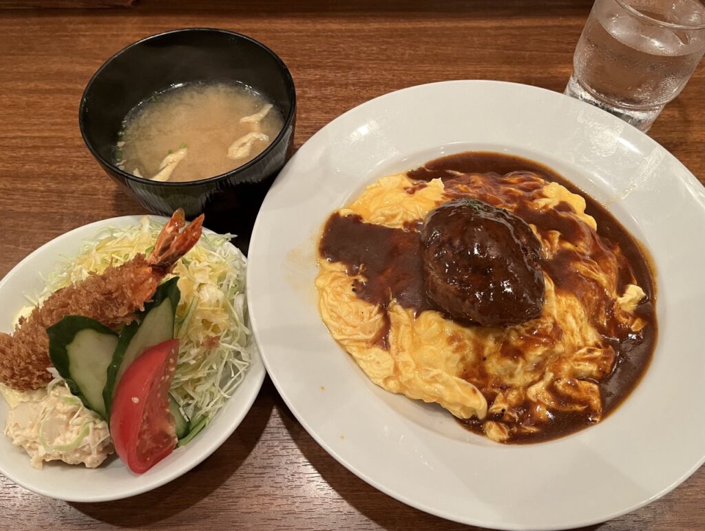 鮮嫩多汁的漢堡排最受歡迎,金黃酥脆的炸蝦與經典蛋包飯,同樣是店內人氣料理。