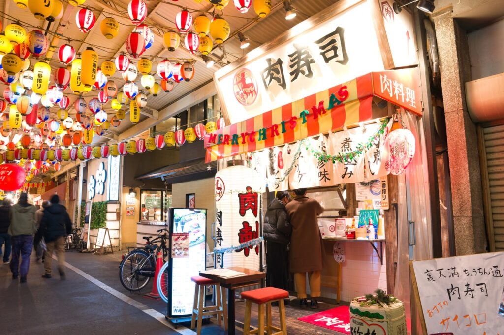 裏天滿位於 JR 天滿站北側,「天滿市場」附近,是一處充滿活力的居酒屋餐飲街。兩旁林立著各式各樣的居酒屋與小餐館,非常適合體驗「梯子酒(はしご酒)」一個晚上像爬梯子般造訪多間居酒屋,一家接著一家品嚐美食與美酒的日本特色飲酒文化。