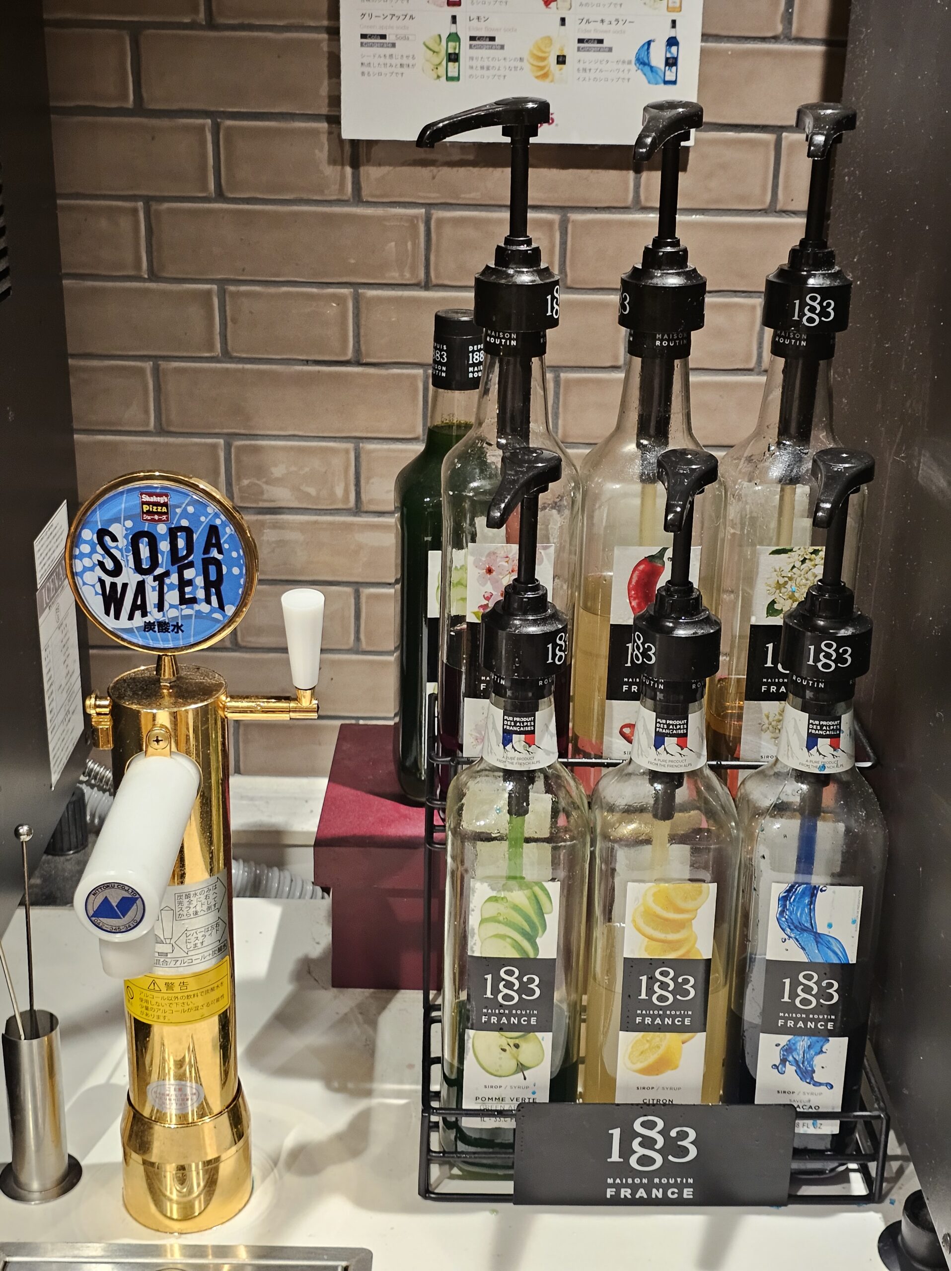飲料吧提供冰飲與熱茶,還能加上各種糖漿自行調製,創造專屬的原創飲料(注:糖漿僅在新宿店提供)。若再加價800日圓,還能享用自助啤酒吧,包含生啤酒、Highball(ハイボール)、檸檬酸酒(レモンサワー)、翠琴通寧水(翠ジンソーダ)等,甚至能用可樂或烏龍茶自己混合,無限暢飲搭配吃到飽的餐點,實在令人滿足。