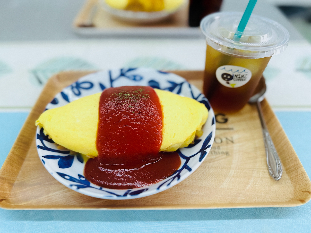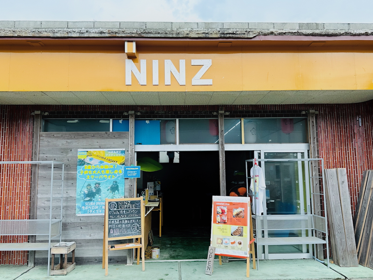 NINZ 是一間結合潛水店、咖啡館與餐酒吧的複合空間,店名同時掛著 Scuba Light Diving / ninz coffee / 真鯛BAR,既能安排浮潛潛水,也能坐下來喝咖啡用餐。蛋包飯是本店主打菜單。