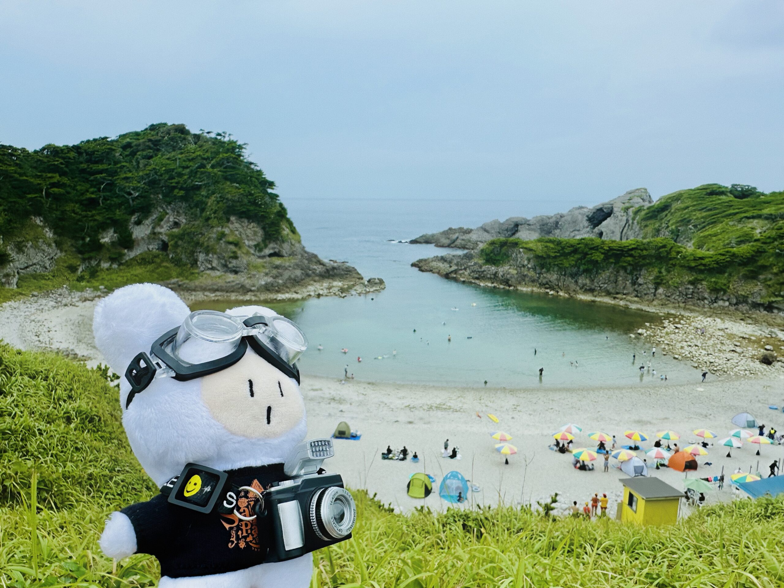許多遠道而來的旅人,正是為了這片沙灘而專程造訪式根島。而我,早在多年前就曾從旅伴的相簿裡見過它的身影,也在宮川大聖的寫真書裡翻到過相關畫面。如今,終於親自站上這片海灣,讓記憶裡的影像成為真實。