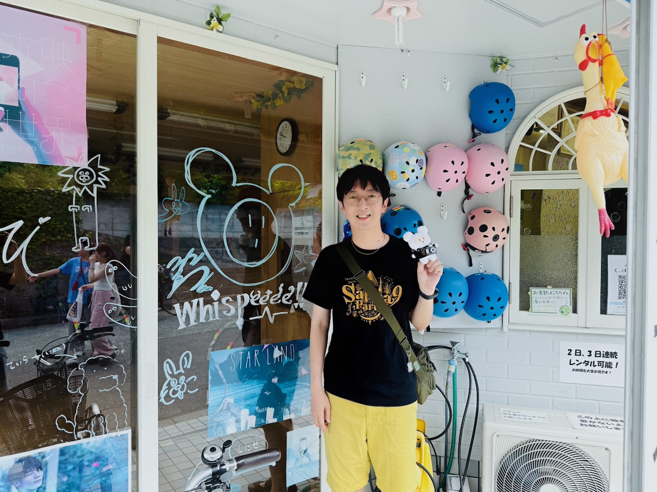 在島內的移動,除了徒步以外,租輛腳踏車尤佳。島上有許多出租自行車的店家,但不用考慮,我選擇的只有一家。那就是宮川大聖老家開的租車店「MANBOW」。這裡是宮川大聖小時候居住的地方,雖然現在一家人都搬到本州居住了,但老家仍在,店面也持續經營。
