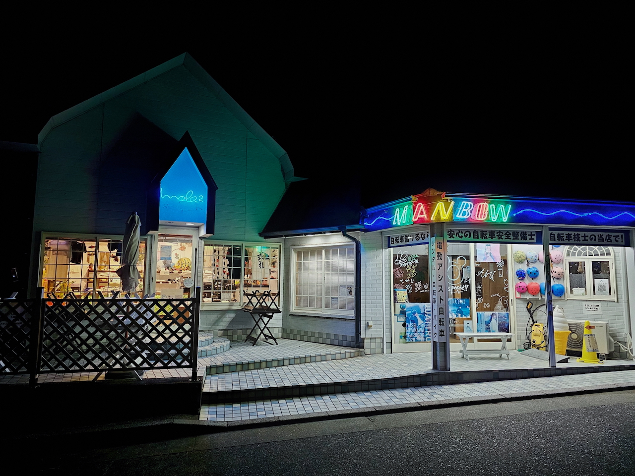 要知道,式根島上大多數的店家,營業都只到下午,根本不需要晚上會亮燈的招牌啊!但宮川君老家開的這間店,卻特地裝上了霓虹燈管製成的店名招牌。