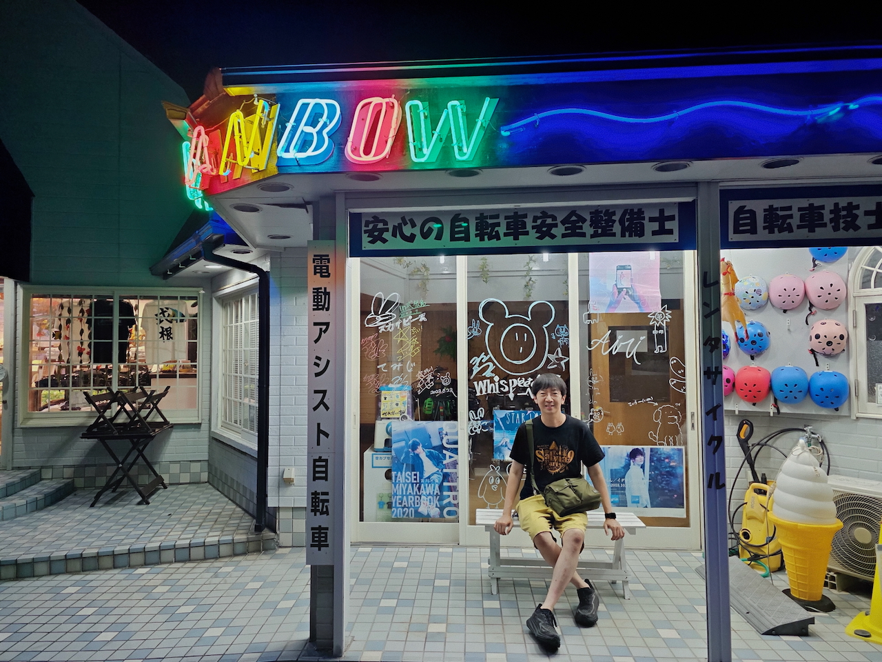 MANBOW 遇見歌手宮川大聖時,他笑著對我們說:「如果想要的話,晚上店家招牌可以為你們點燈喔!」