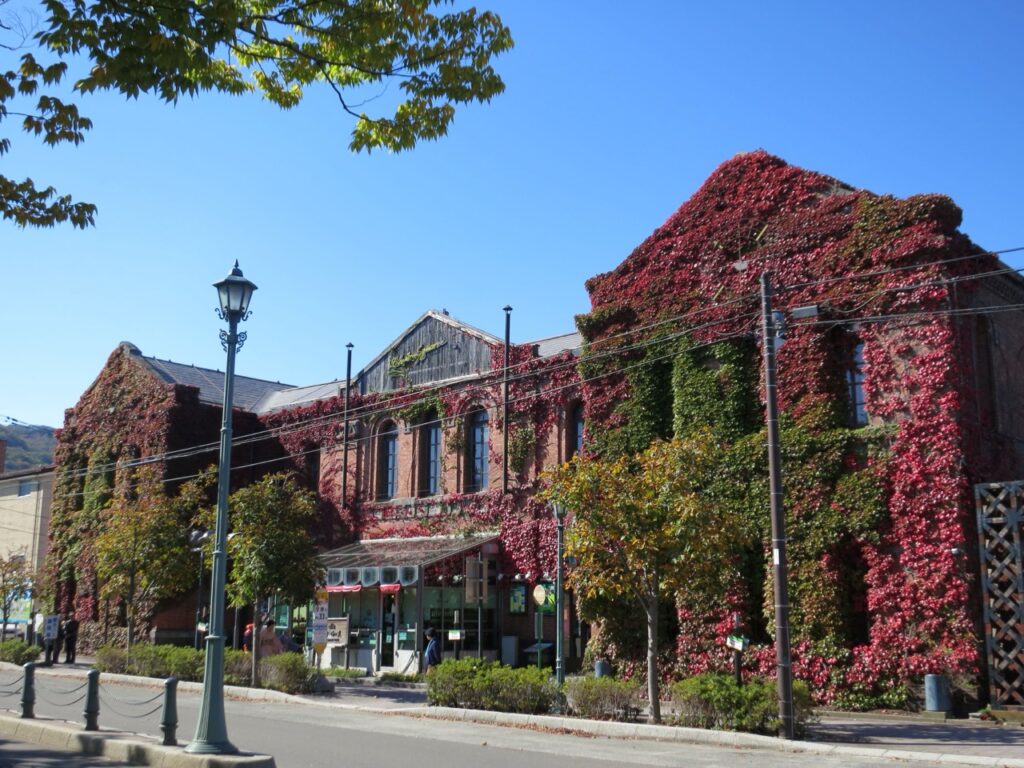 「函館明治館」是改造 1911 年作為舊函館郵局的複合式設施,館內有玻璃工藝、音樂盒等函館特色伴手禮商店,建築物則完整保留了明治時代的紅磚風貌。入秋後,佈滿外牆的落葉植物「爬牆虎(蔦)」轉為鮮紅,猶如被紅霞擁抱的明治館,美得讓人停下腳步,只想靜靜欣賞。前方的開港通街道也同時綻放迷人秋色,在清爽的秋日氛圍裡,成為函館散步路線的一大亮點。