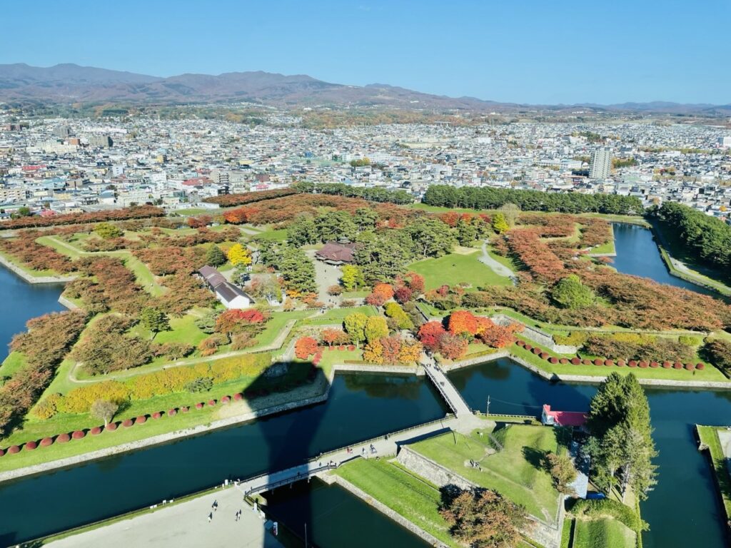 「五稜郭公園」擁有日本首座西洋式五稜星形城郭遺跡,除了做為歷史舞台,更是受市民愛戴的公園。四季皆美的五稜郭公園,也是北海道著名的賞櫻景點。除了春天的櫻花,秋天時五稜郭公園楓葉交織出的色彩,不管是漫步在護城河道或悠閒野餐,都是推薦的賞楓方式。