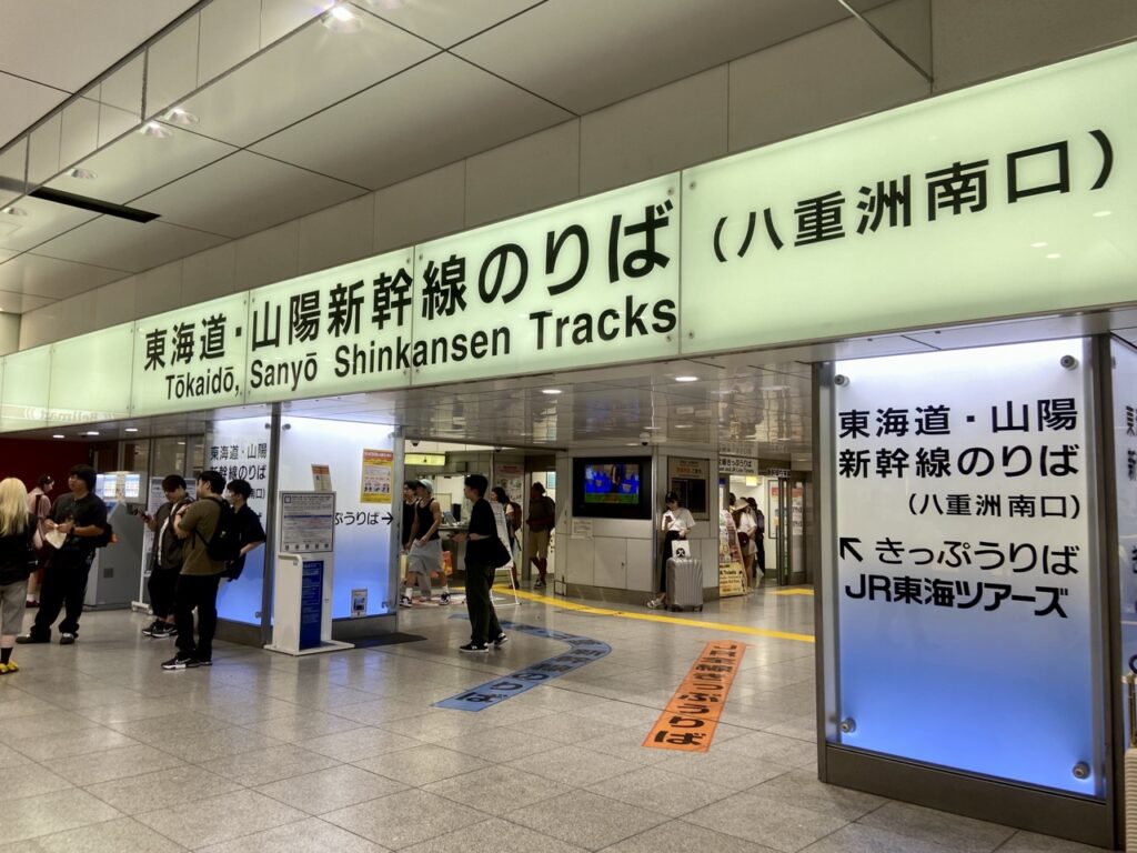 「東海道・山陽新幹線」,要往大阪、博多方向的新幹線就從這裡搭車。東海道新幹線主要前往大阪,山陽新幹線則是到博多。