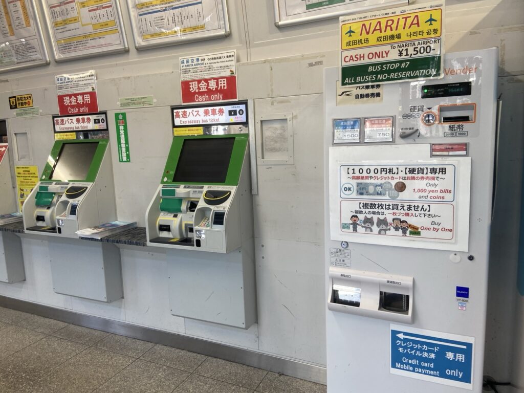「Airport Bus TYO-NRT」最快 65 分鐘可抵達成田機場,票價只要 1,500 日幣。不需預約,全車自由座。從八重洲南口,前往「JR 高速バスきっぷ売り場」的售票機購買車票(這裡購票只限現金喔!),再前往巴士站搭車即可。如果持有 Suica、Pasmo 交通卡的話,直接上車刷卡超方便。