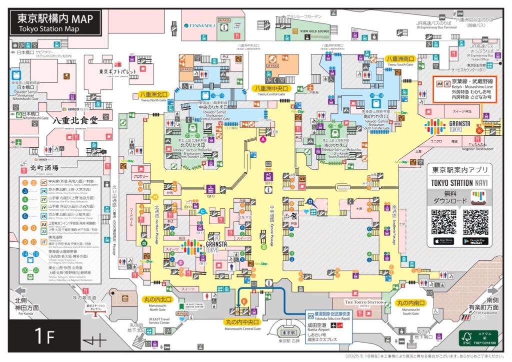 | 八重洲北口 | 購物/美食/轉乘 | 新幹線、日本橋三越、大丸百貨、八重北食堂、機場巴士 |