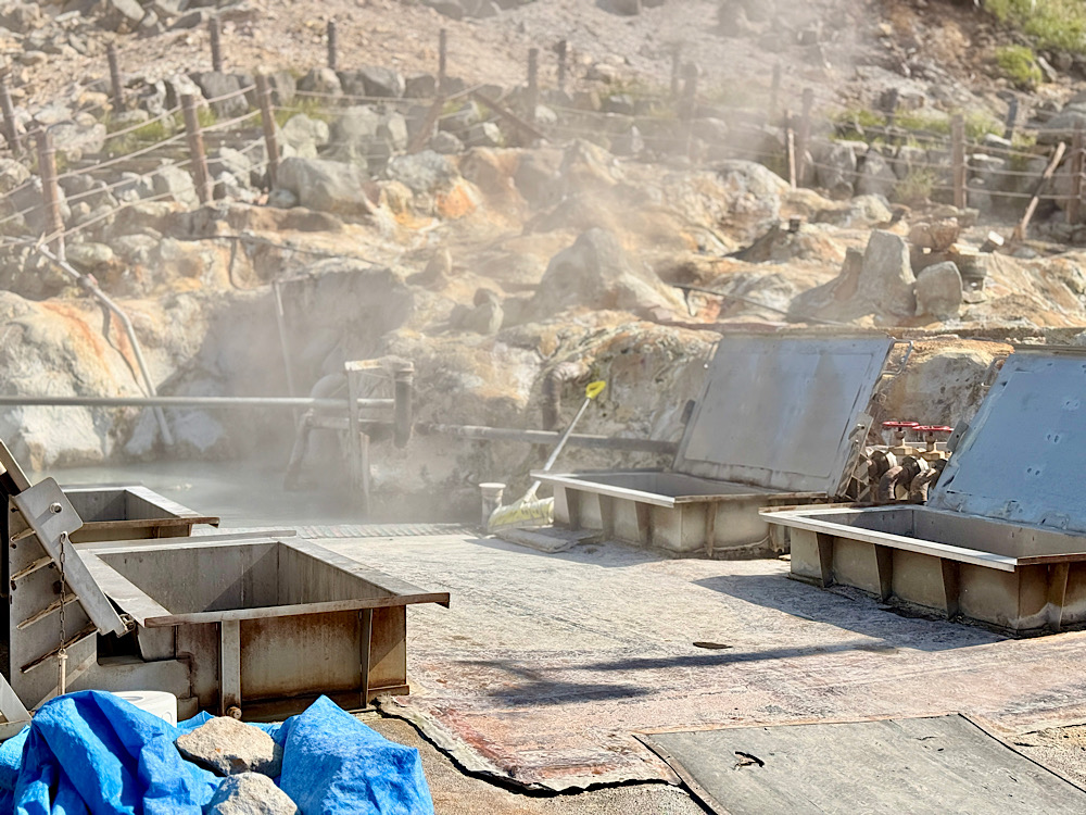 其中最不能錯過的,就是現場販售的黑玉子(黑色溫泉蛋)。這些黑玉子是直接使用大涌谷的地熱溫泉現場煮製而成,因為泉水中含有成分讓蛋殼變成獨特的黑色。