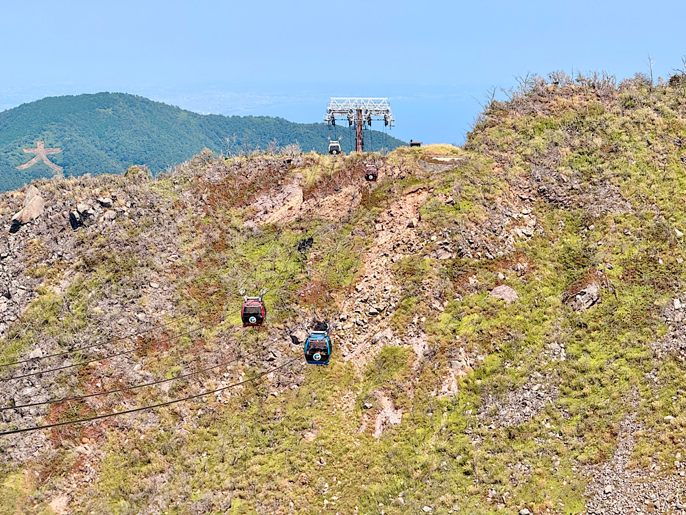 前往大涌谷最推薦也最有觀光氣氛的方式,是搭乘箱根登山電車接空中纜車的組合路線。從箱根湯本站出發,先搭登山電車到早雲山站,再轉乘箱根空中纜車。沿途可以從高空俯瞰箱根連綿山巒與火山地貌,還沒到站,窗外就已經能看見白煙不斷從地表冒出,每次回訪經過都會被震撼一次!