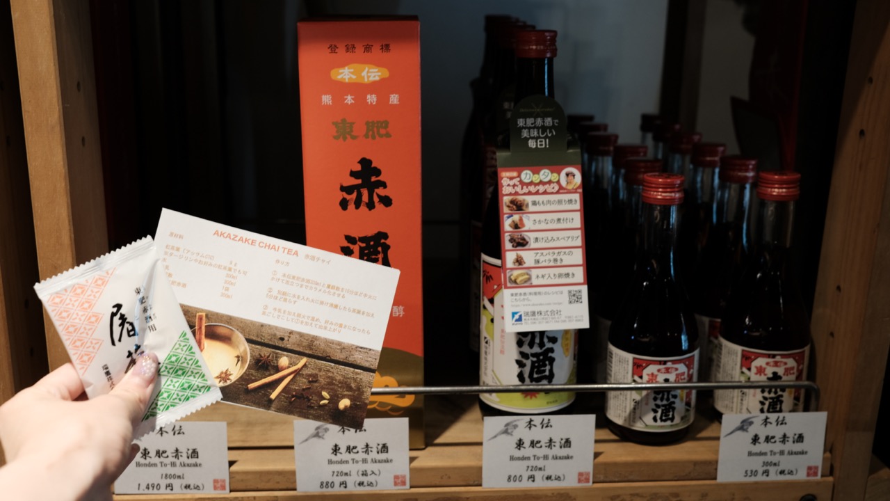 你聽過加入木灰釀的酒嗎?有在熊本的超市見過這瓶看起來包裝樸素的「赤酒」嗎?熊本知名地酒「瑞鷹酒造」,就位於本文介紹的川尻!他們開發了一款來自熊本、還成為當地家庭及居酒屋等廚房必備的調味料。