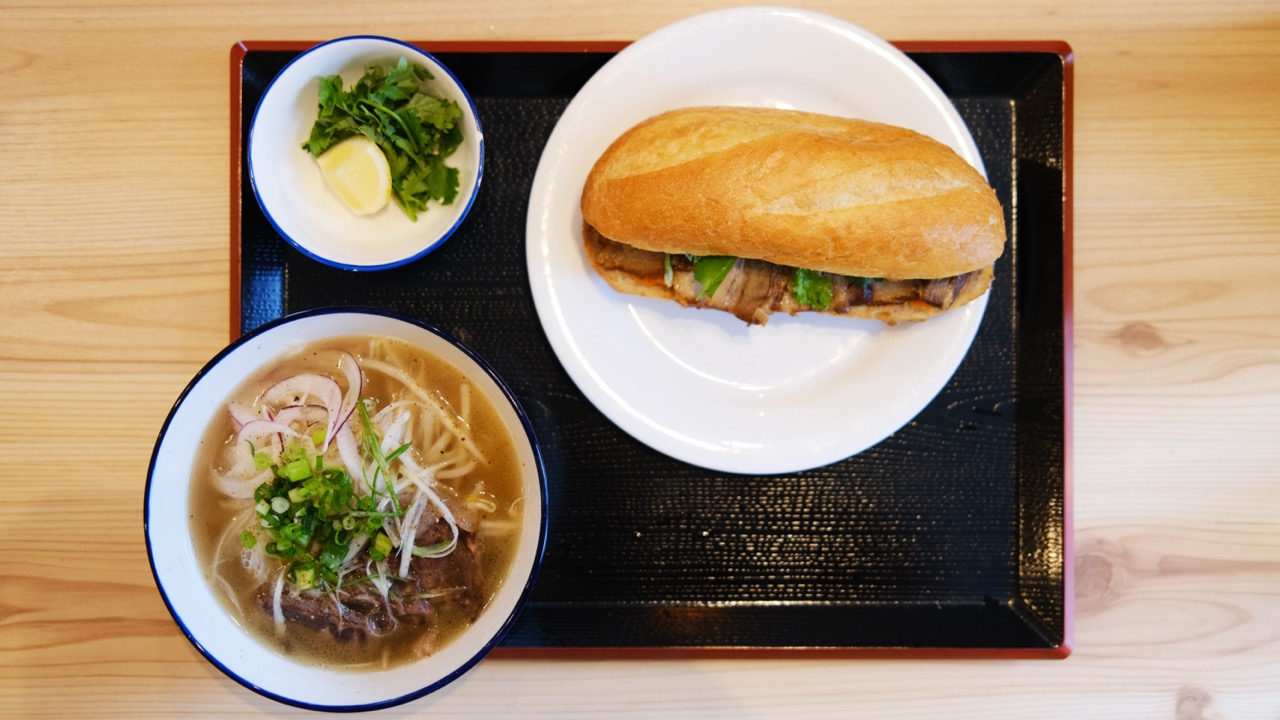 需要注意的是,營業時僅有週一至週六 10:30~16:00,不過也因此不會錯過這裡划算的商業午餐「迷你越南河粉搭配可自選餡料的越南麵包(バインミー)」,只要 1290 日圓!號稱「迷你」的份量,卻一點也不迷你!河粉肉片使用的部位,還是會令台灣人懷念的牛腱肉,大大滿足!