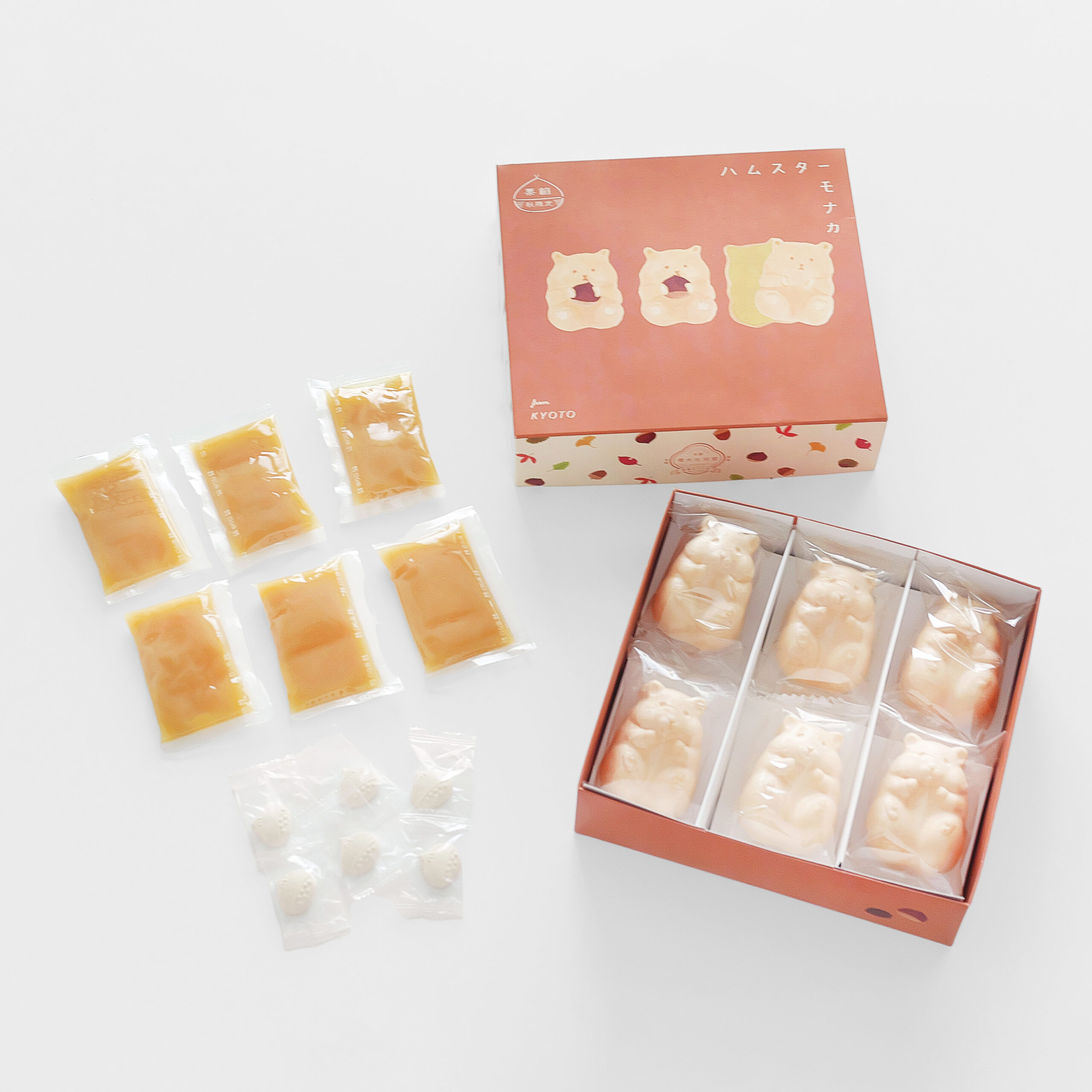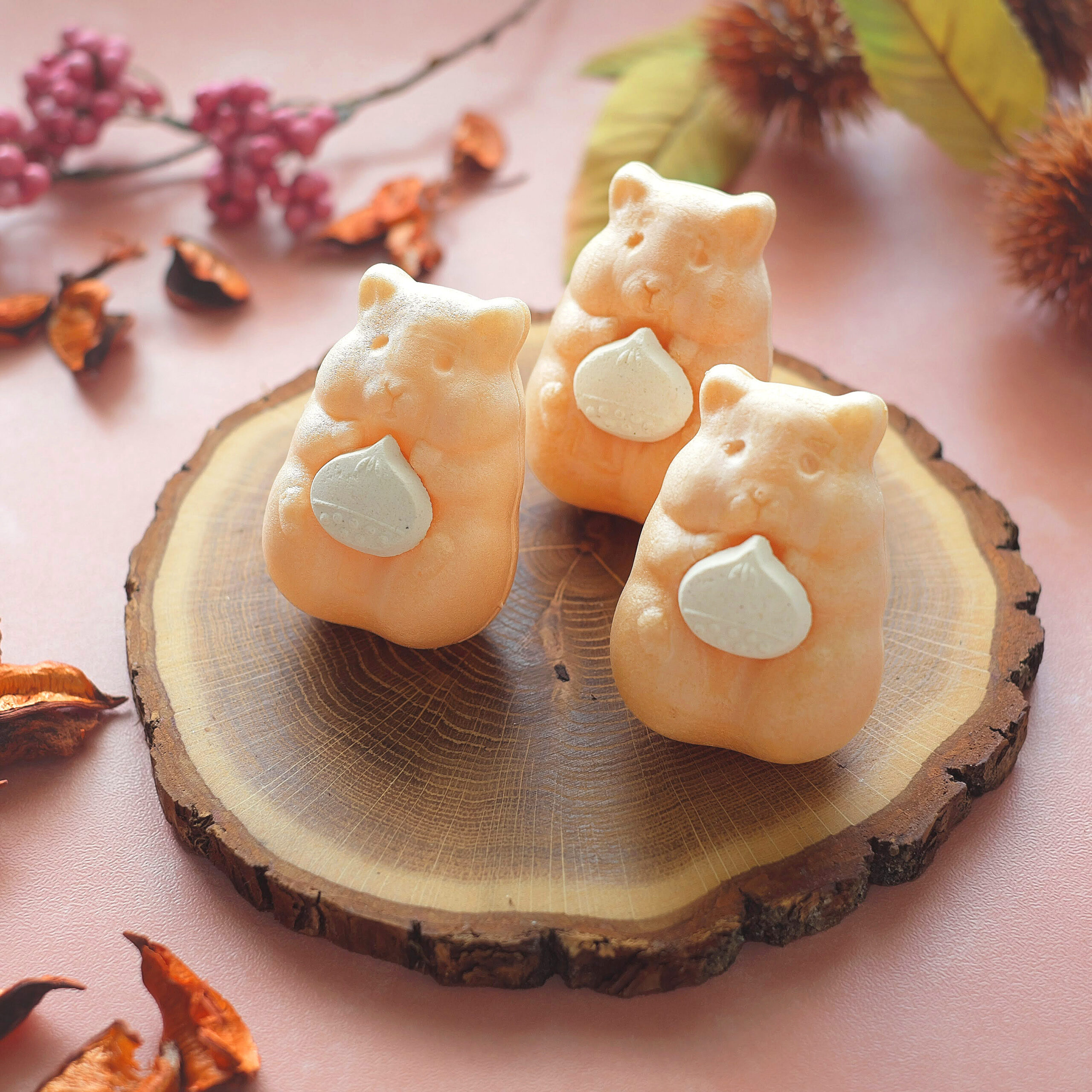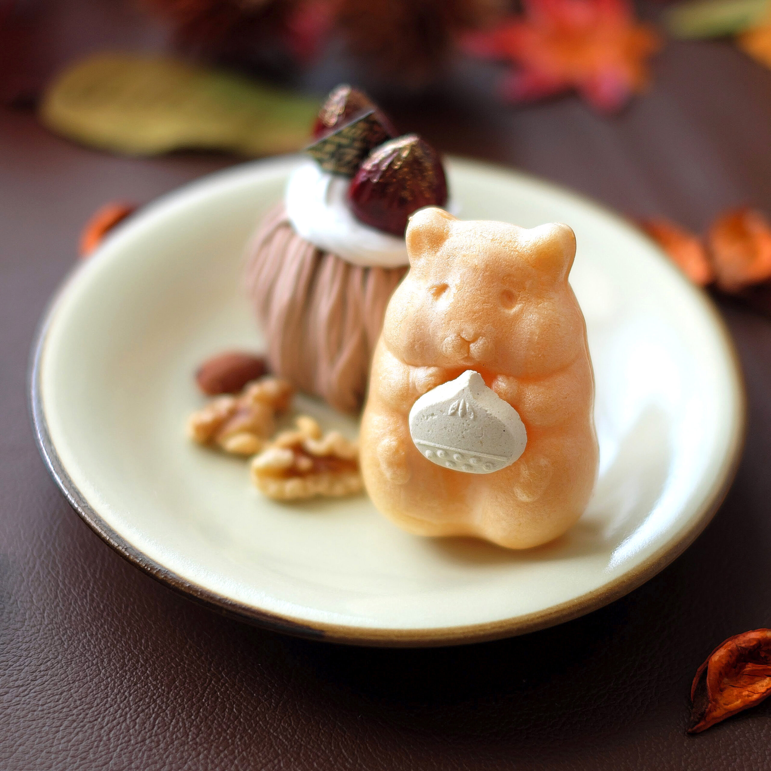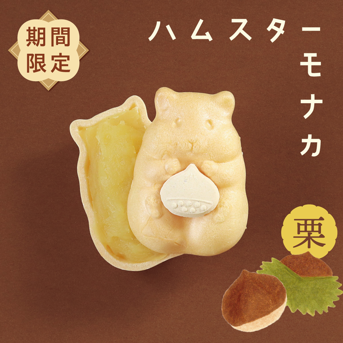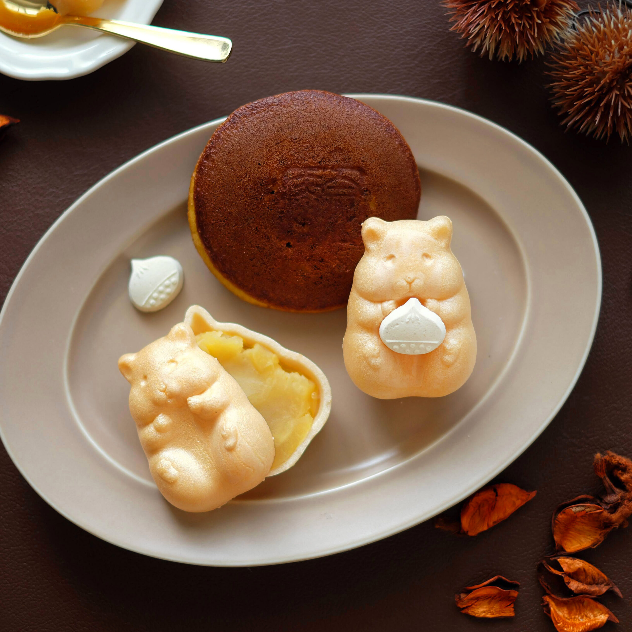 造型設計則融入滿滿的趣味巧思。最中呈現圓滾滾的倉鼠模樣,腹部特地設計凹槽,附贈的栗子造型落雁可安放其中,瞬間變身成「抱著栗子的倉鼠」,讓人忍不住拍照分享。其可愛度與季節感兼具的設計,使這款和菓子成為秋日送禮或自用的理想選擇。