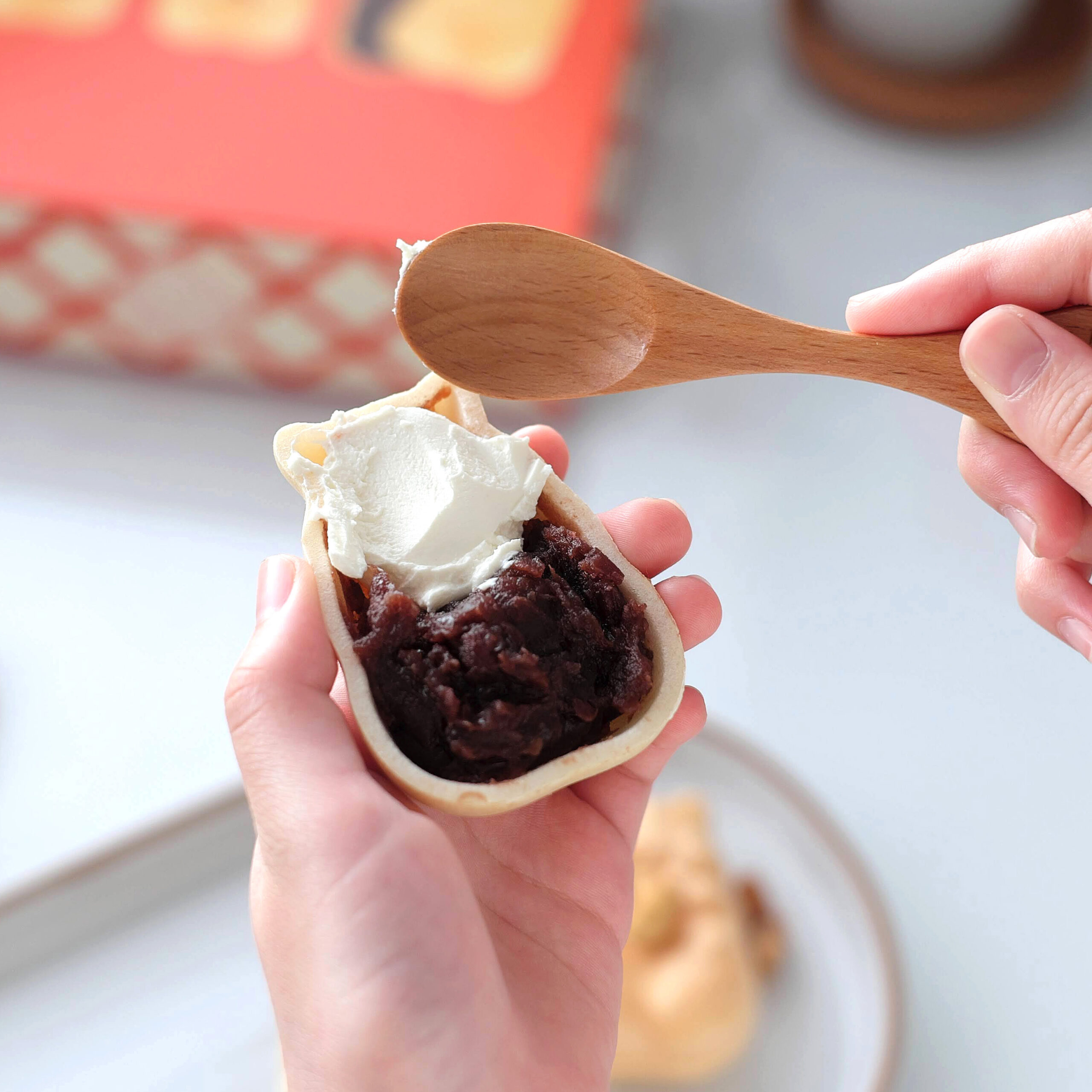 「倉鼠最中」最大的特色是消費者可以親手將內餡填入最中皮。每組商品都附有50克濃郁栗餡,讓人能依喜好調整餡料的份量。這款栗餡口感綿密,甜度清爽,忠實呈現栗子本身的芳香,搭配酥脆的最中皮,口感對比鮮明,既雅緻又不膩口,十分適合作為茶點或飯後甜品。