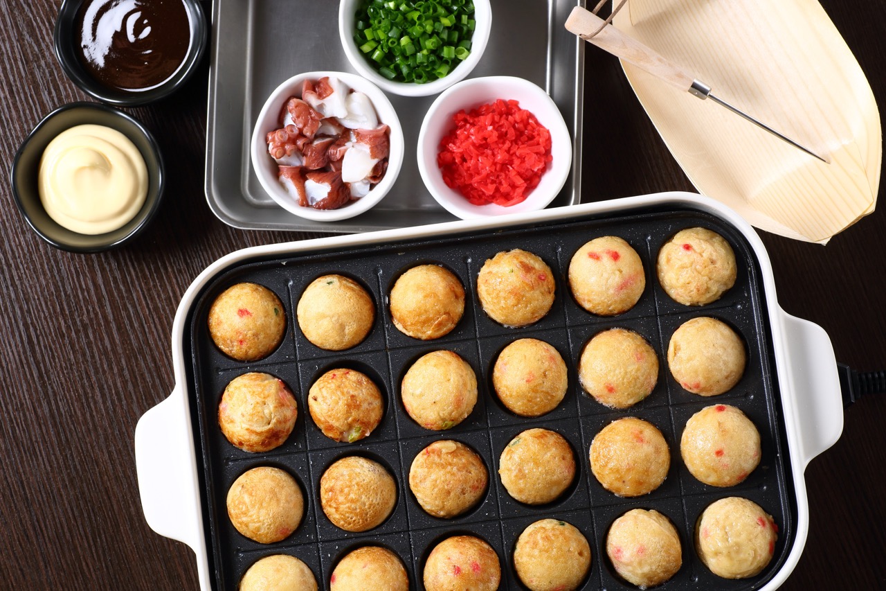 在大阪,「章魚燒派對(たこ焼きパーティー)」是最受歡迎的聚會方式之一。家人朋友圍著章魚燒機,一邊聊天說笑,一邊輪流掌廚。有人負責倒麵糊,有人放餡料,有人專心翻動鐵板上的小丸子,場面其樂融融。製作章魚燒的過程本身就充滿樂趣,特別是翻動章魚燒的技巧,往往會成為歡樂的話題。