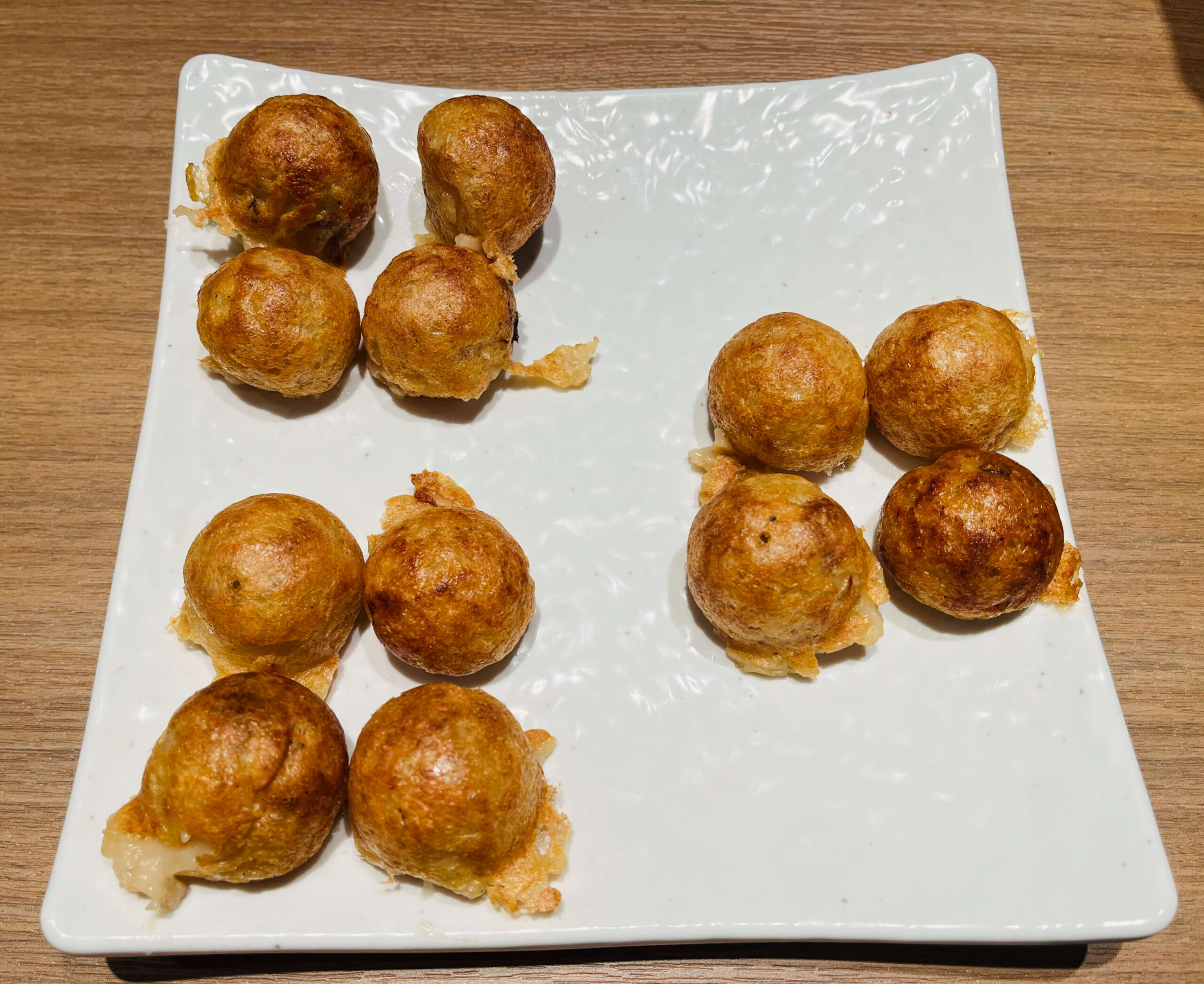 這裡的章魚燒也相當講究,遵循大阪傳統風格,外皮薄透不會過分酥脆,讓內餡的章魚鮮味得以充分展現。若想嘗試新意,店內還提供最受女性和孩童歡迎的章魚燒焗烤。每道料理都是現點現做,雖然需要稍等,但能確保品嚐到最佳風味。