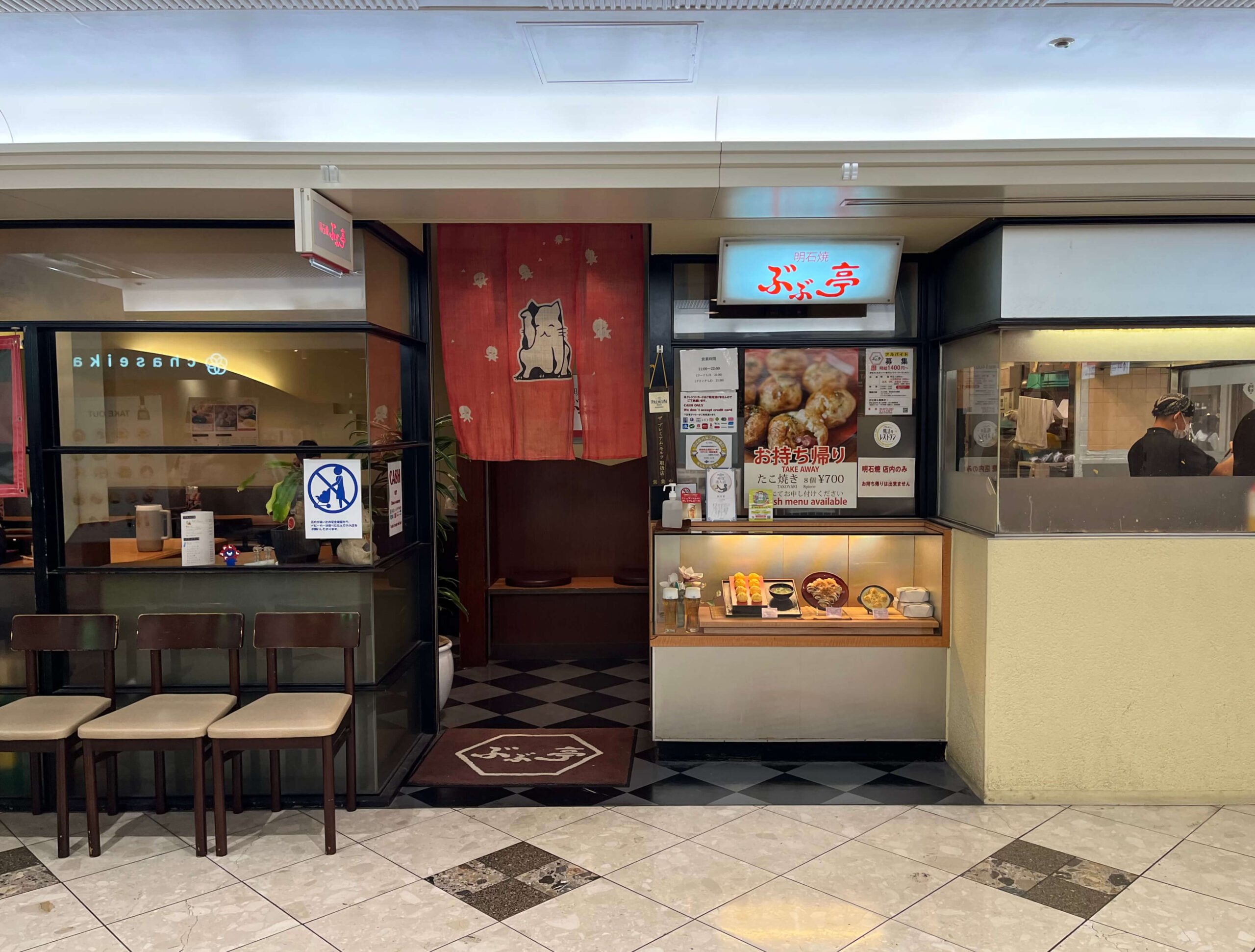 「明石燒 布布亭(明石燒 ぶぶ亭)」位於梅田阪急三番街地下街內。從店名就可以看出,這店的特色是明石燒。這裡的明石燒採用料理職人傳授的特製高湯製作,口感綿密滑嫩,特別適合喜歡溫潤口感的客人。