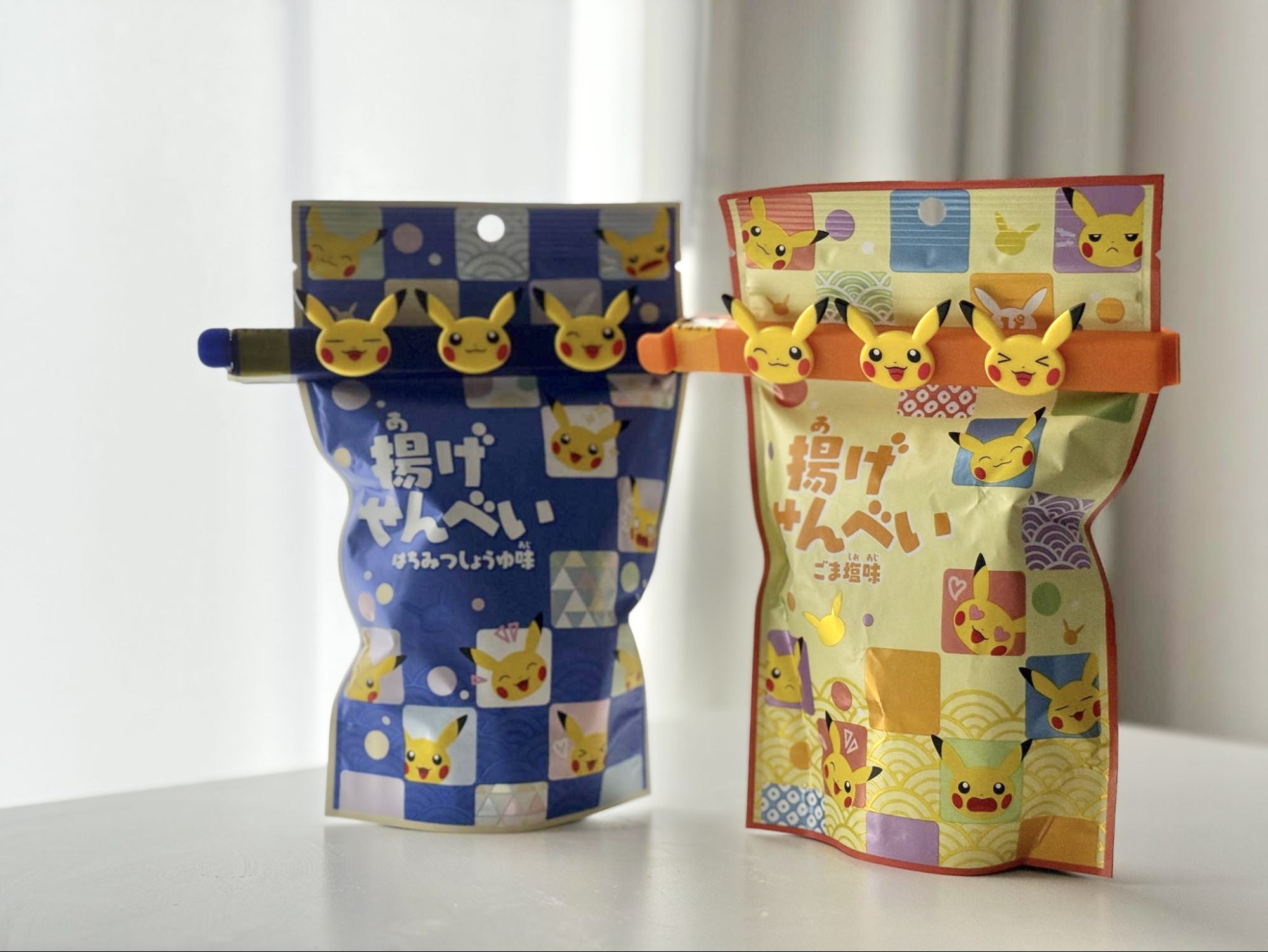 「皮卡丘仙貝(揚げせんべい)」最大特色是附可愛小用具,可以幫助封口,沒吃完存放也不擔心!上面有不同表情的皮卡丘設計,實用又有趣。