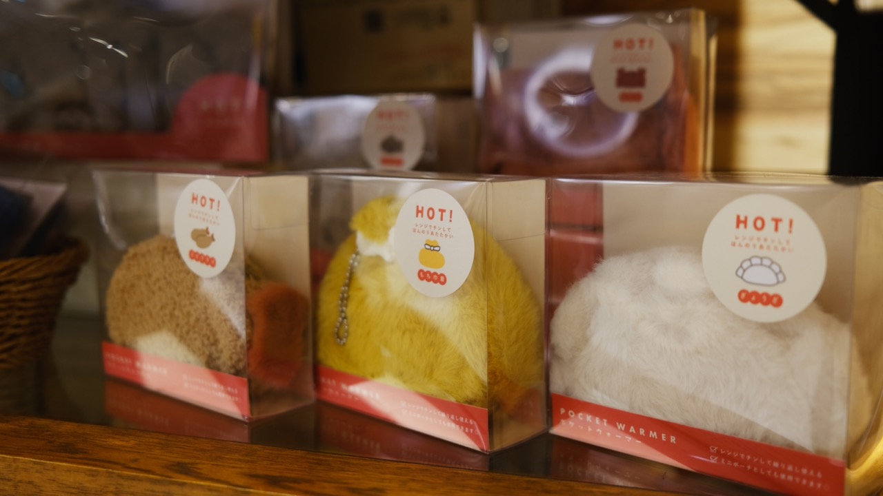 例如,即將入秋冬的此刻,店家推薦「Yummy Warmer ヤミーウォーマー」系列商品,將可愛的巾著、餃子等日式食材製成暖包及冬季服飾雜貨,真的超級萌!