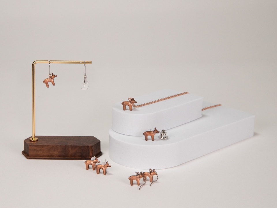 鹿埴輪飾品系列(3,500日圓起):由手作品牌 Do-goods 製作,可選耳環、項鍊或胸針,小巧可愛又帶點考古學趣味。