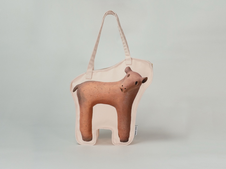 以館藏重要文化財〈埴輪鹿〉為主題設計,仿陶土色製成,連回頭的姿勢都栩栩如生。包身特別留出足部凹陷線條,A4尺寸實用又有個性。