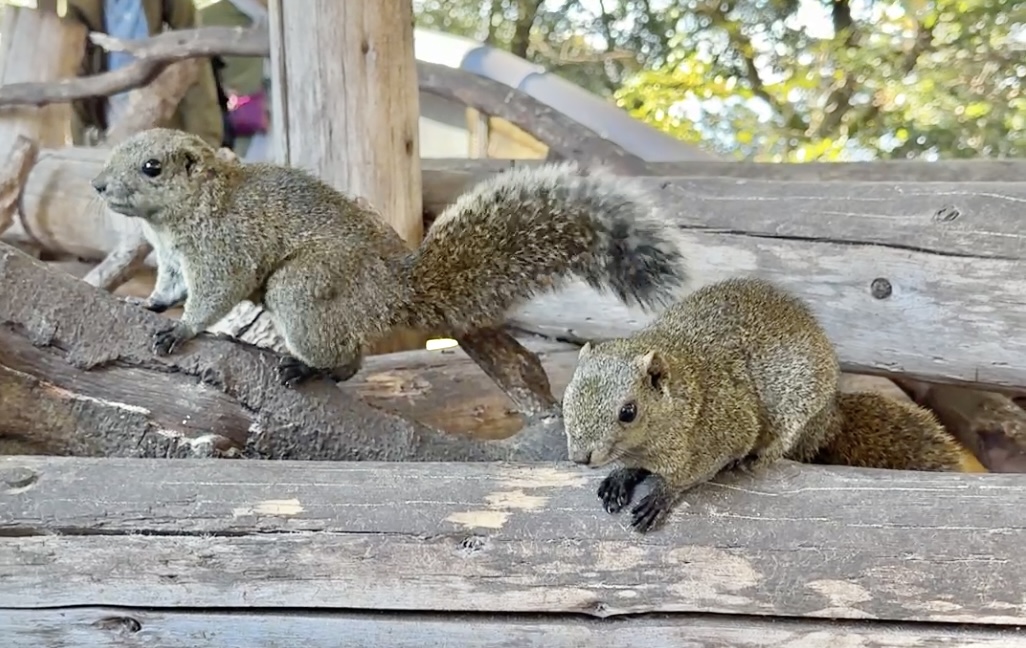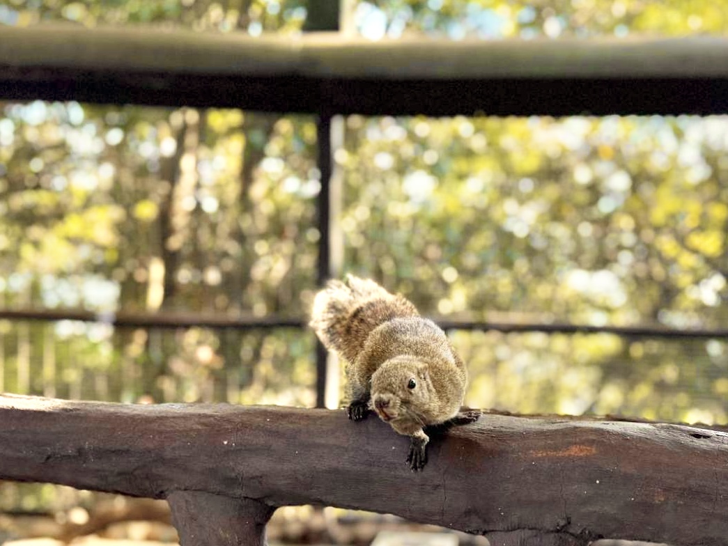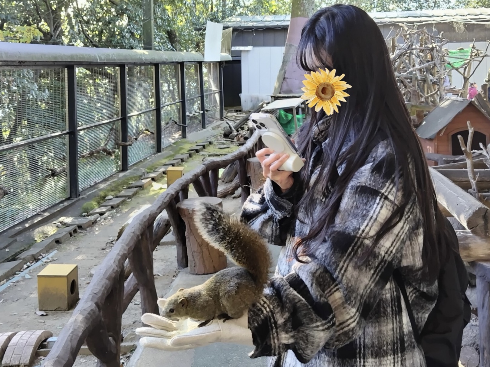 陽光正好,小松鼠們在我身上與腳邊穿梭、跳躍、停留,我超級開心!沒想到能在岐阜與同鄉松鼠巧遇、玩耍。原本只是旅途中意外發現的設施,卻成為我在金華山印象深刻的一處。