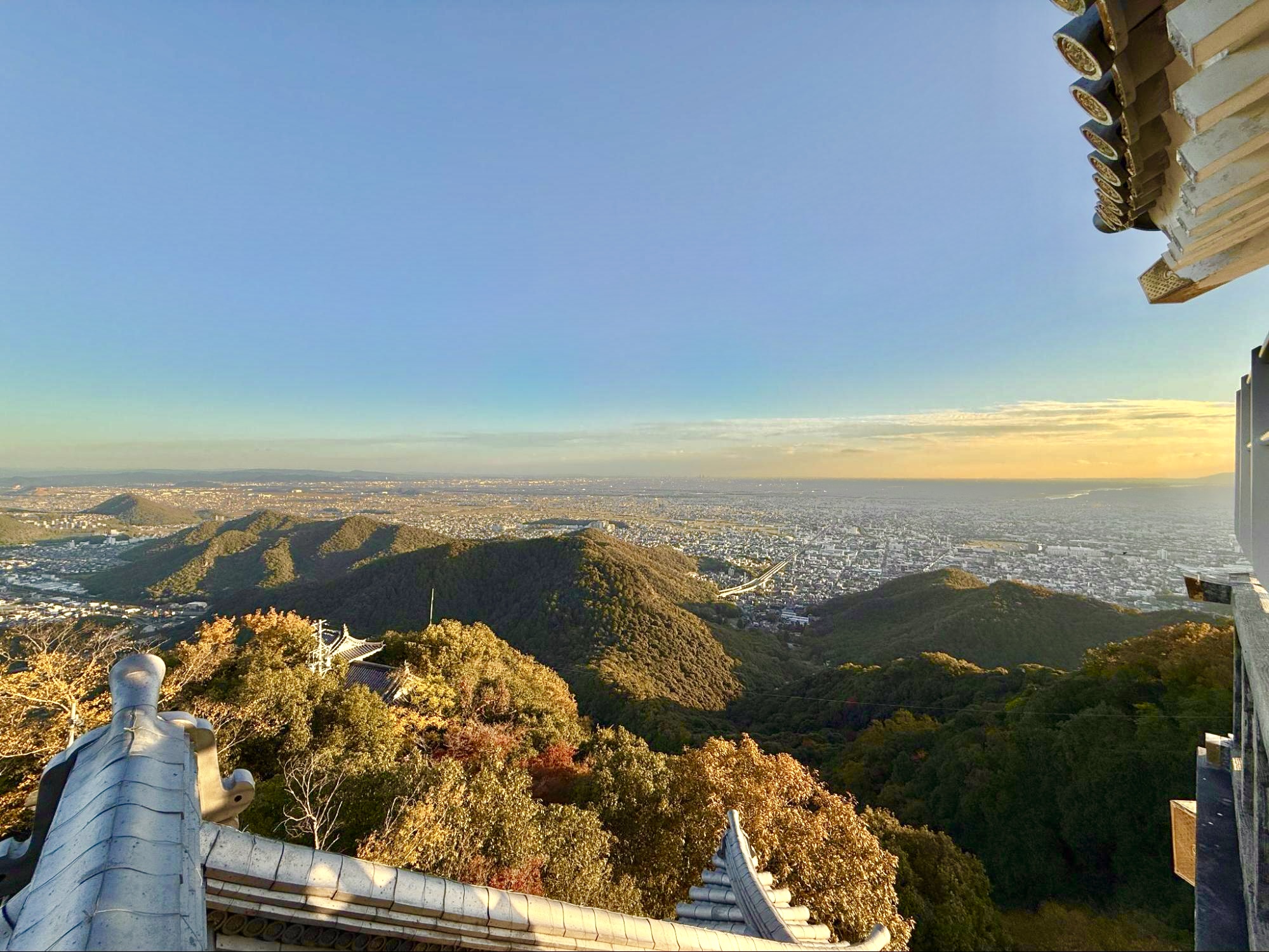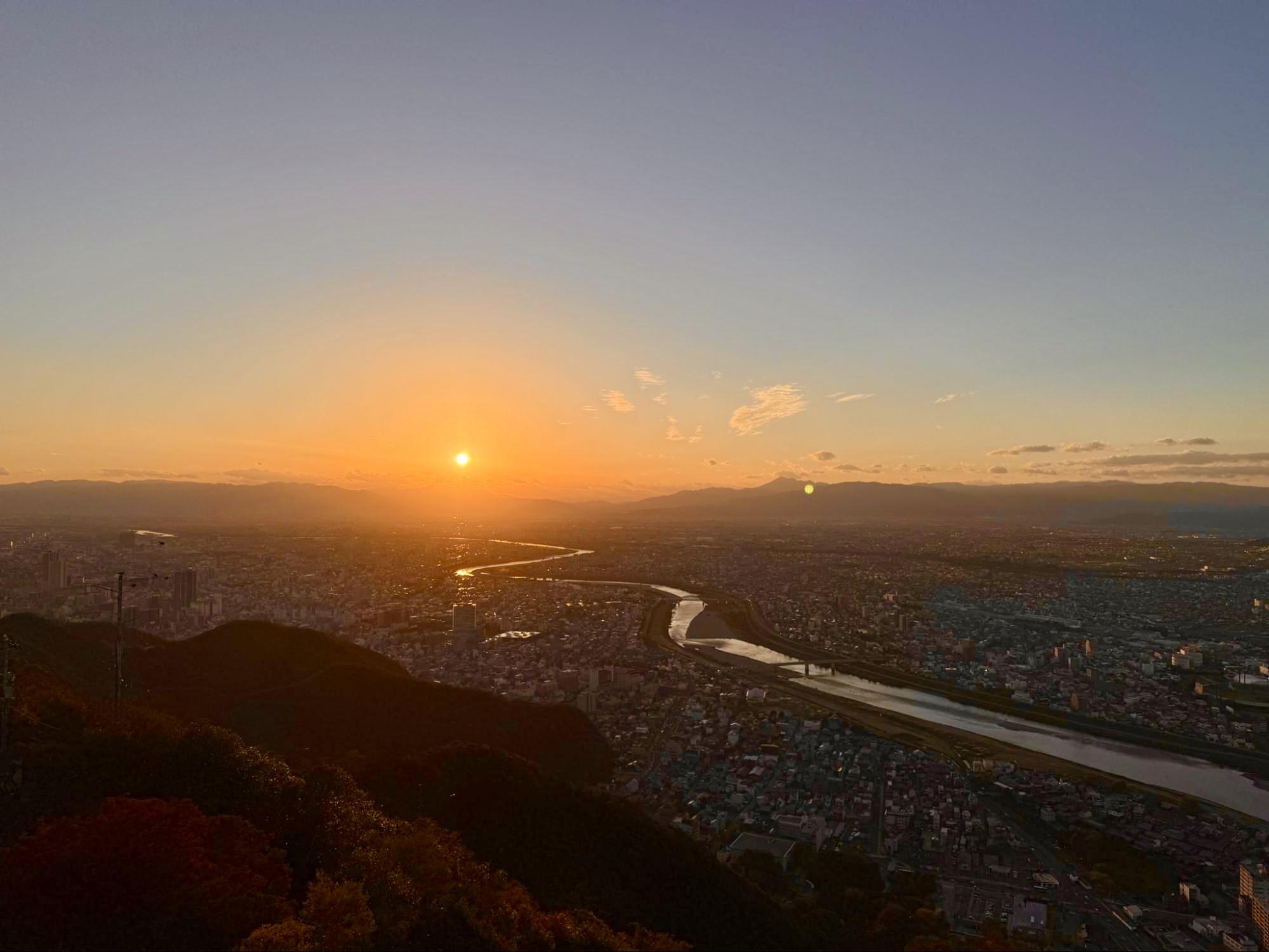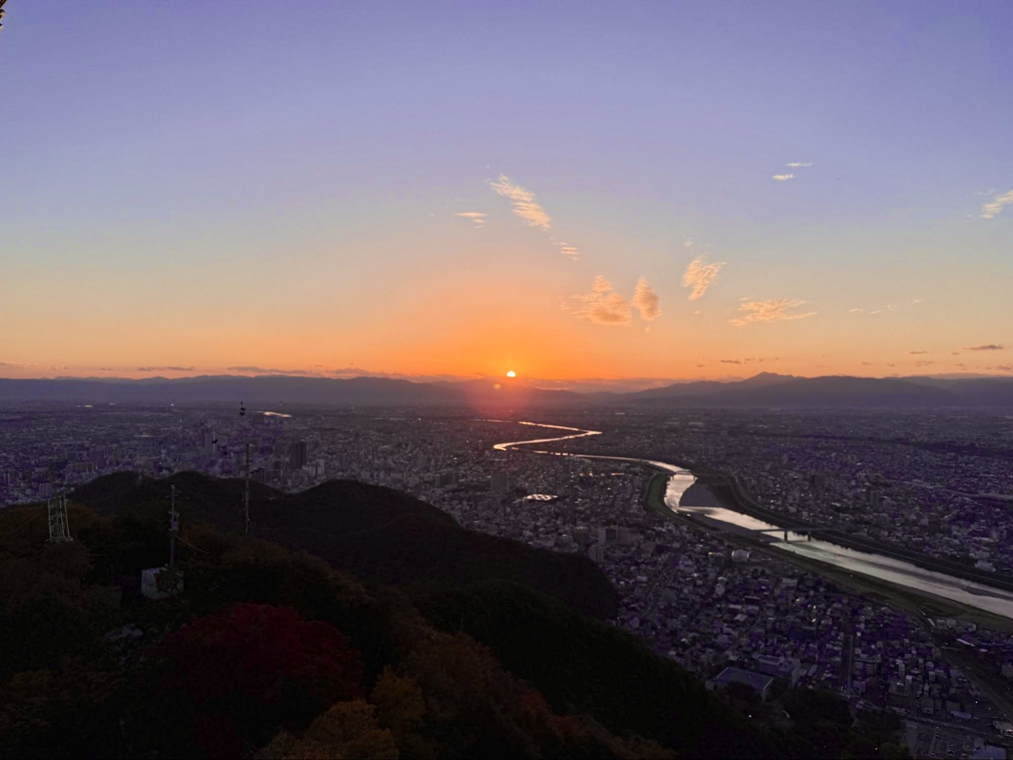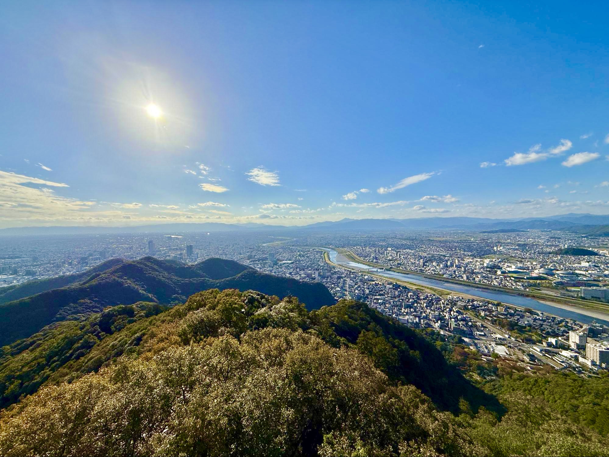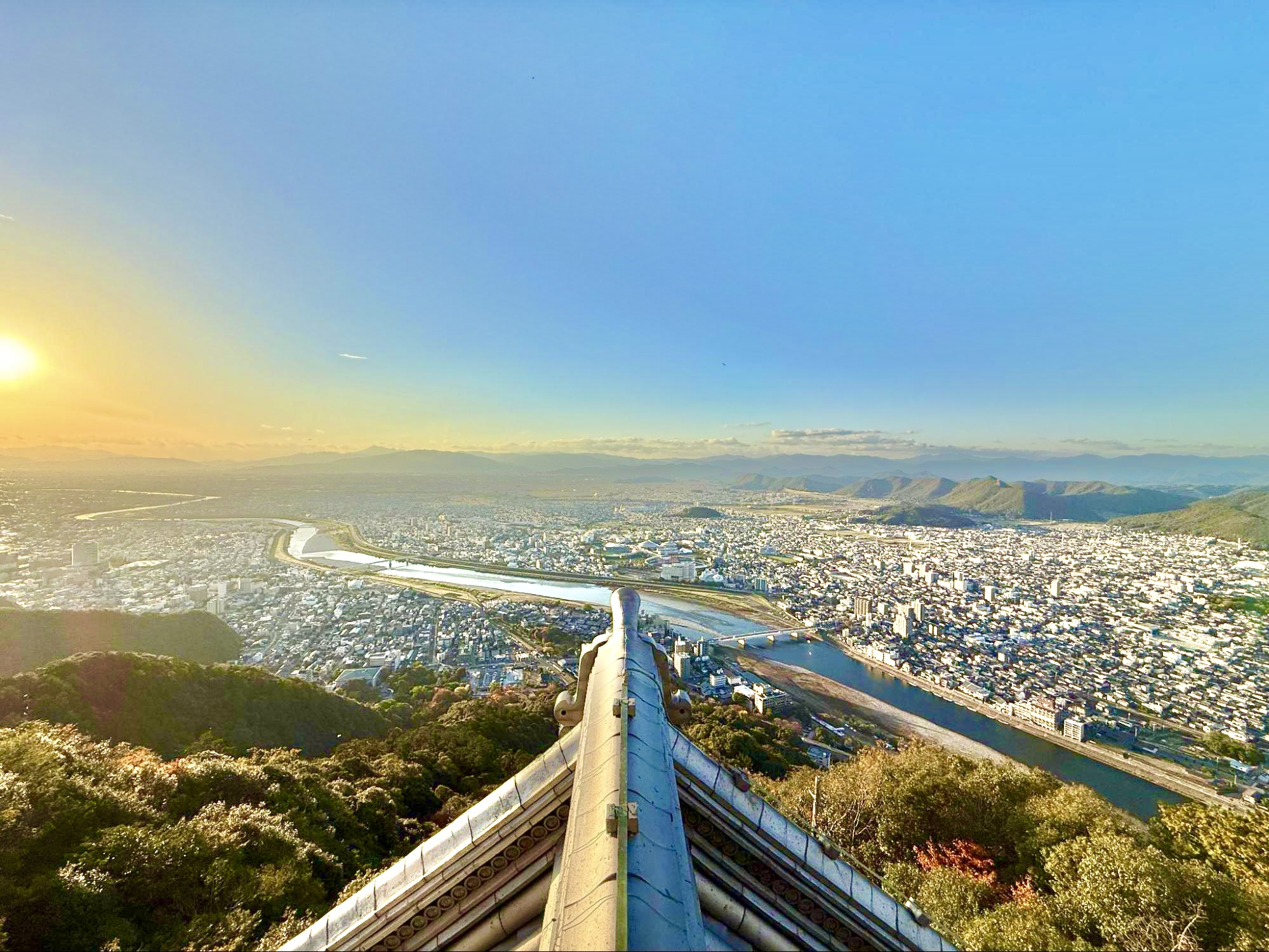 從這個高度望出去,城市與群山之間的光影層層疊疊,腳下則是整齊的市景與川流不息的車流,金華山與長良川在眼前延伸,山的稜線與河流的曲線同時構成岐阜的輪廓。望向名古屋方向,遠方高樓群的影子若隱若現,讓人意識到這座城市與周邊地區的連結。