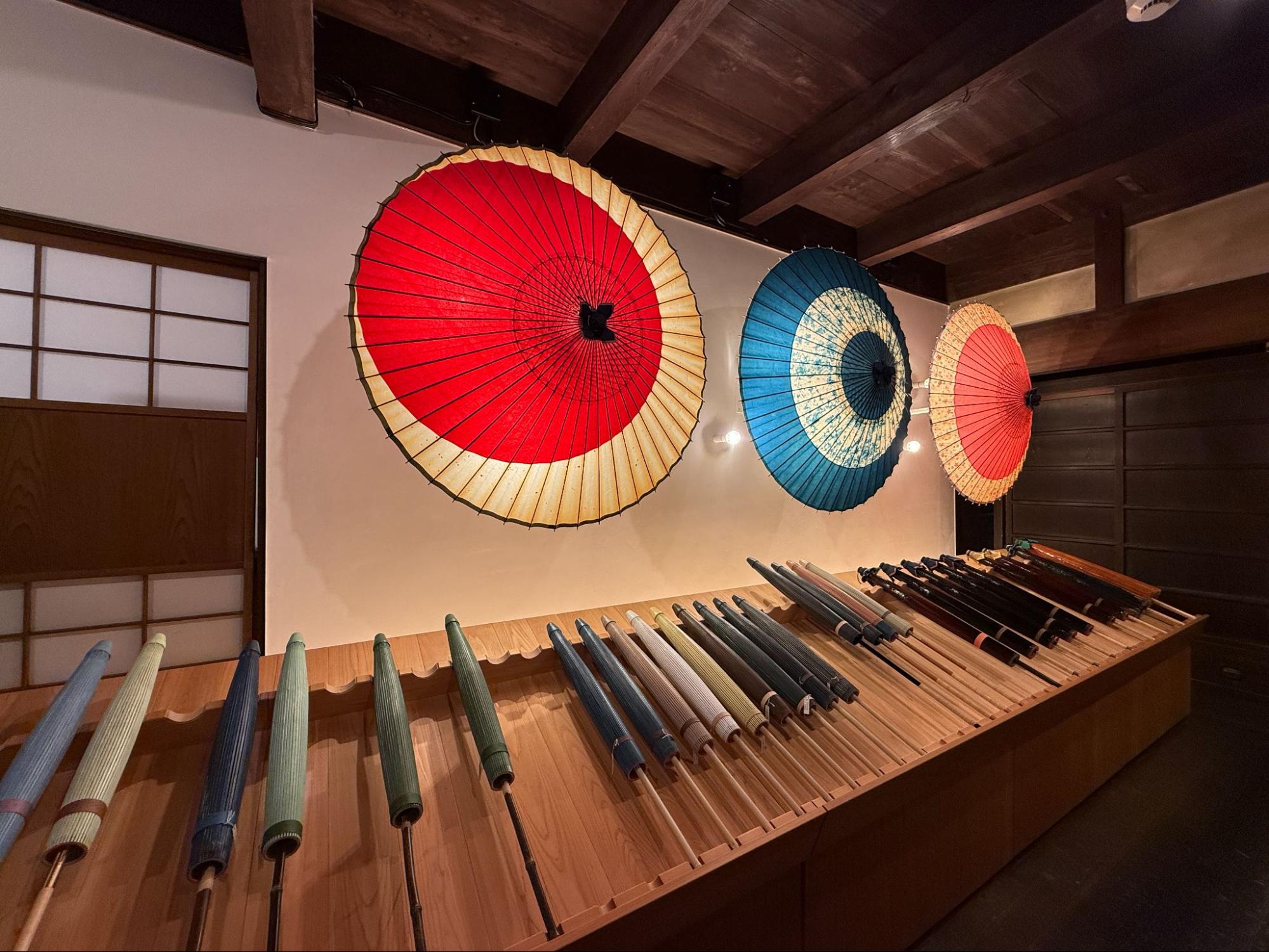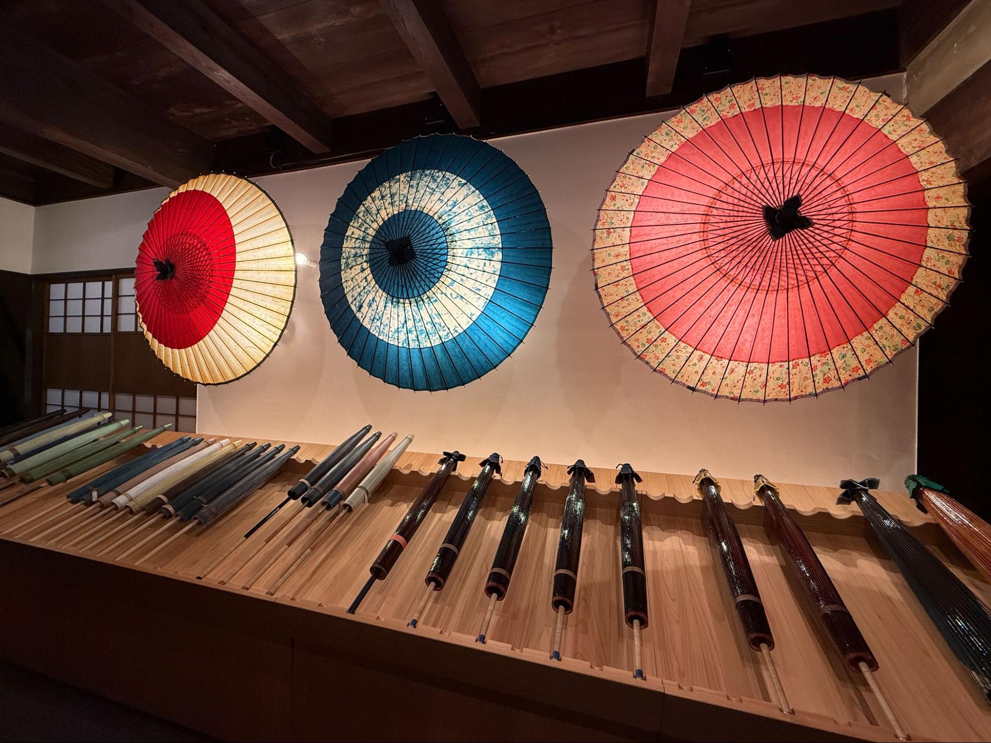 接著帶我到「和傘CASA」,從整排職人手工打造的和傘中,細心挑選出最適合和服色調的傘。傘骨纖細、傘面溫潤,一打開便發出「喀」的一聲,彷彿開啟一扇通往過去的門。我彷彿成了時間的旅人,走進另一個時代。