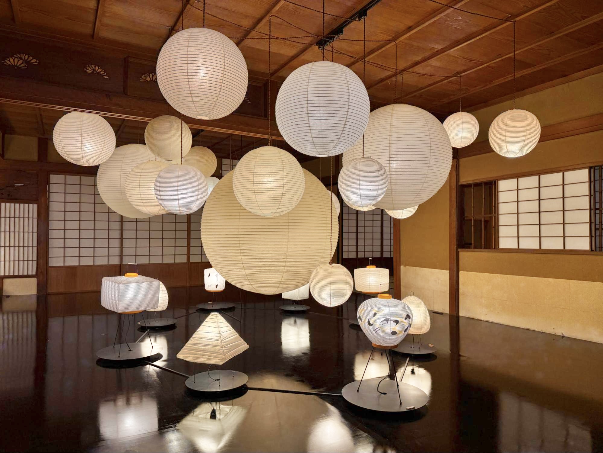 店員笑著招呼:「二樓也可以參觀喔!」於是我順著木梯往上走去,走進川原町新開幕的文化空間「CASA stella」。常設展「AKARI gallery」,展示著世界知名藝術家野口勇(Isamu Noguchi)所設計的 AKARI 燈具。