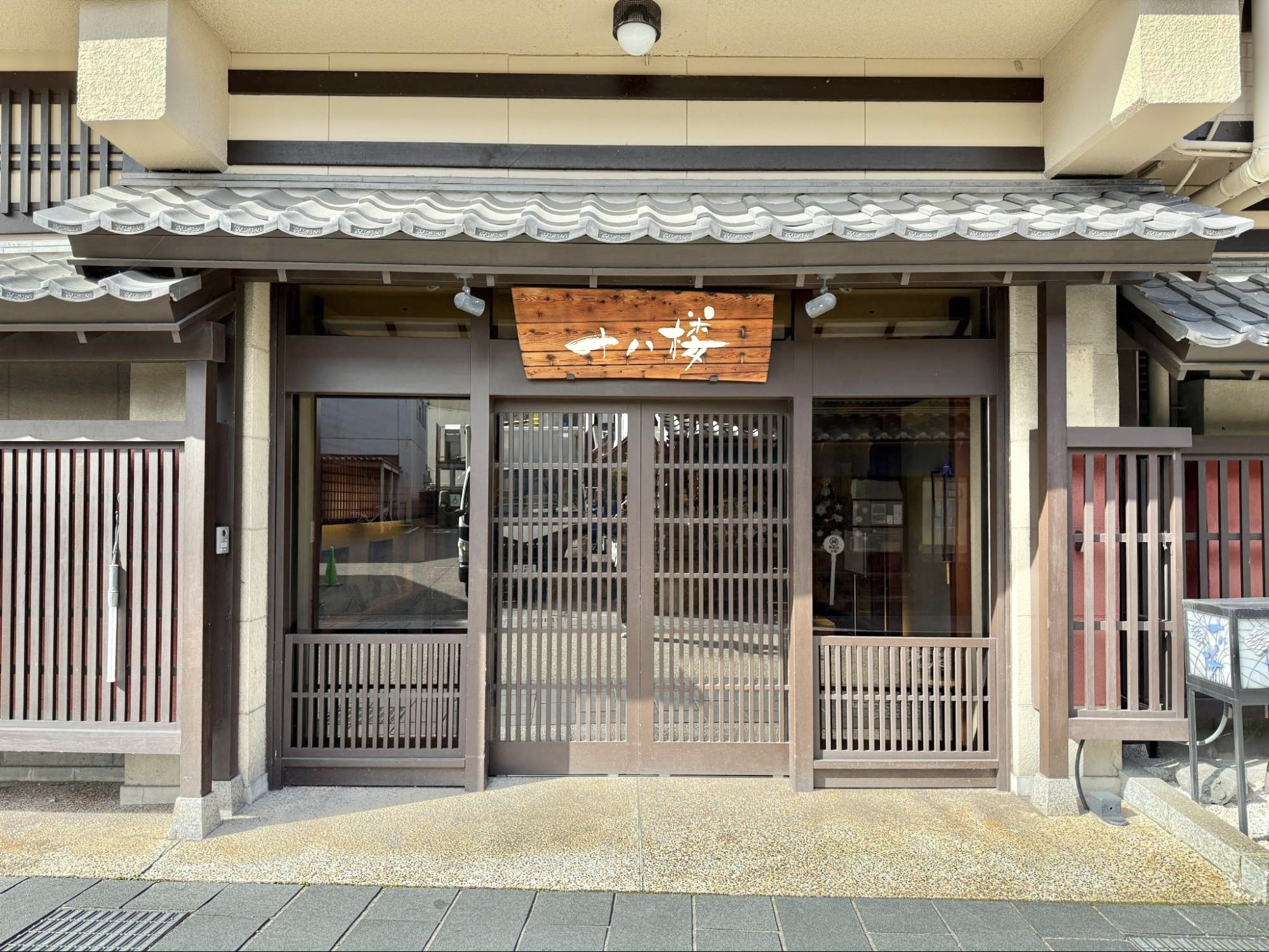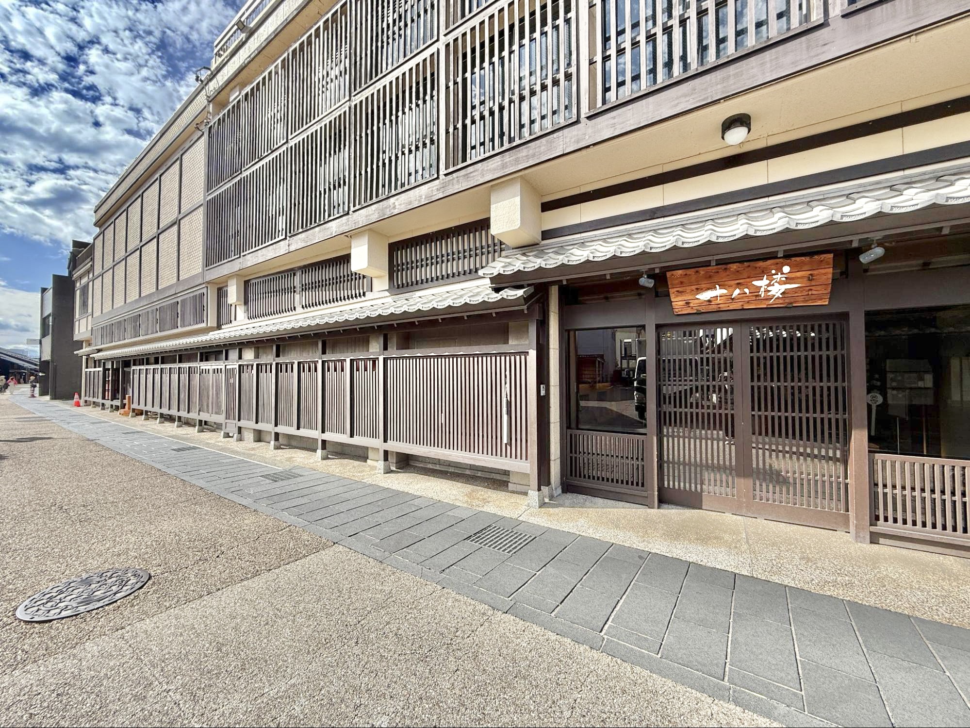 車子再次回到川原町。河面上映著城市的燈光,水聲在靜謐的夜色裡格外清晰。這夜入住的,是創業超過百年的老字號旅館「長良川溫泉十八樓(十八楼)」。