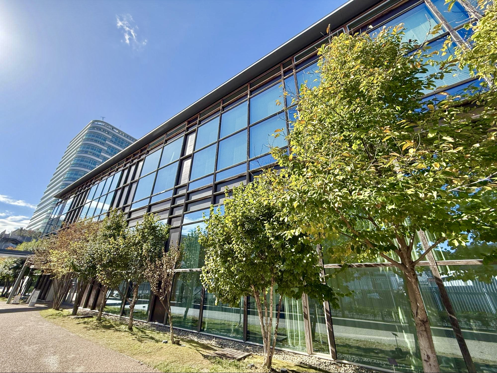 開車離開車站區,不久便抵達岐阜人引以為傲的文化地標「大家的森林 岐阜 Media Cosmos(みんなの森 ぎふメディアコスモス)」。