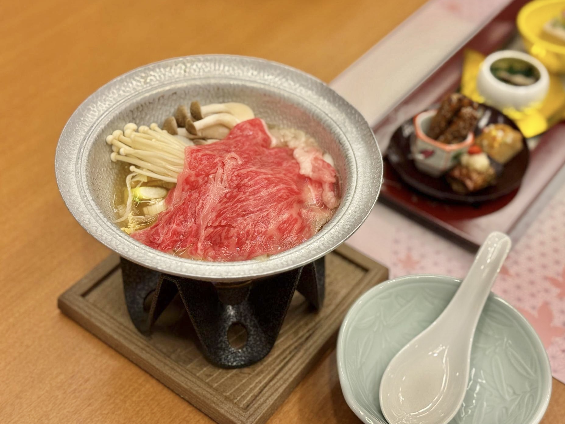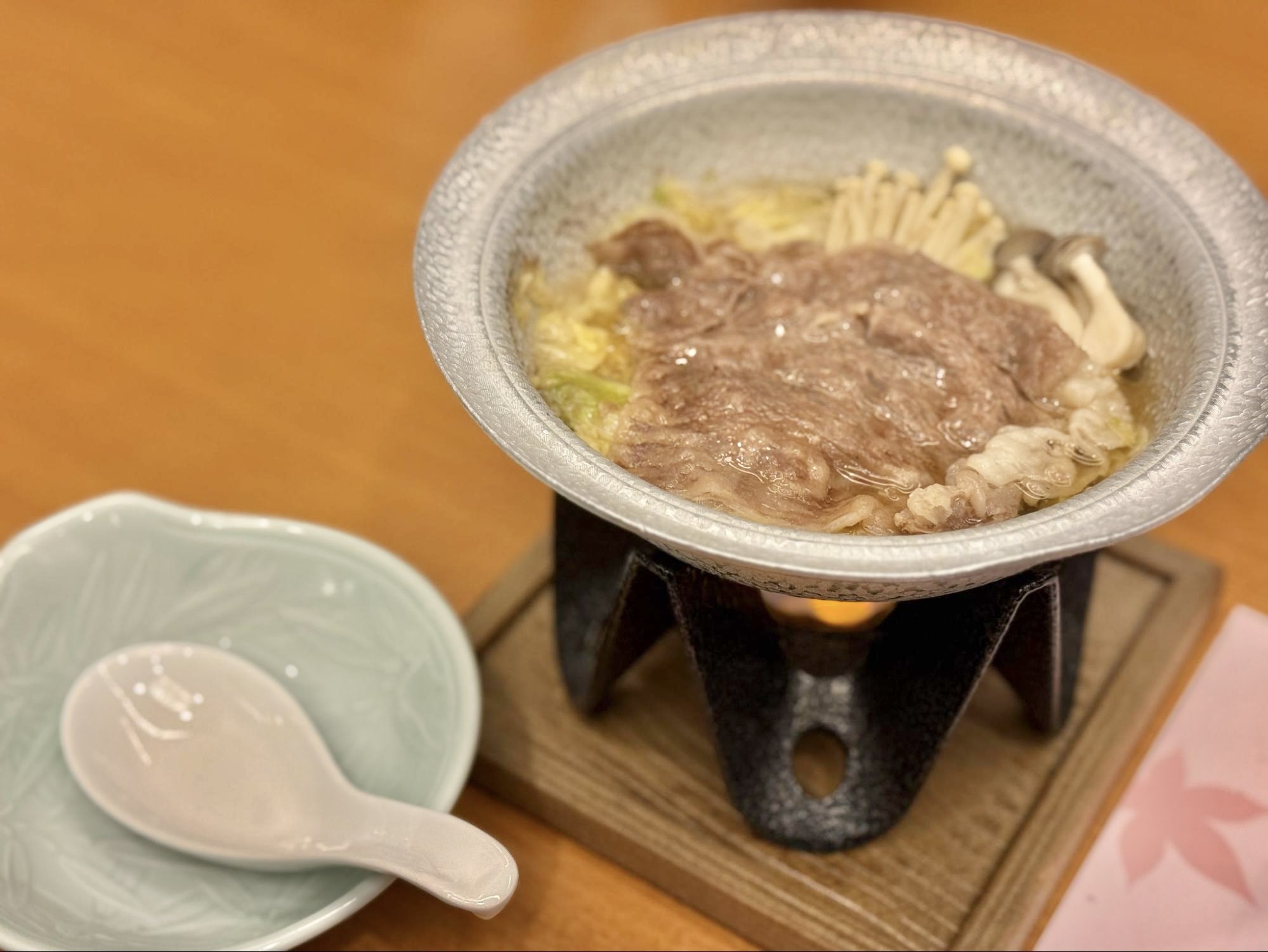最讓我驚艷的,是飛驒牛小火鍋!薄切的飛驒牛在鍋中涮過,油脂像雪花般,入口的瞬間柔軟又濃郁,那滋味完全超越期待。搭配山菜與味噌的香氣,整桌料理都在訴說著岐阜土地的豐饒。