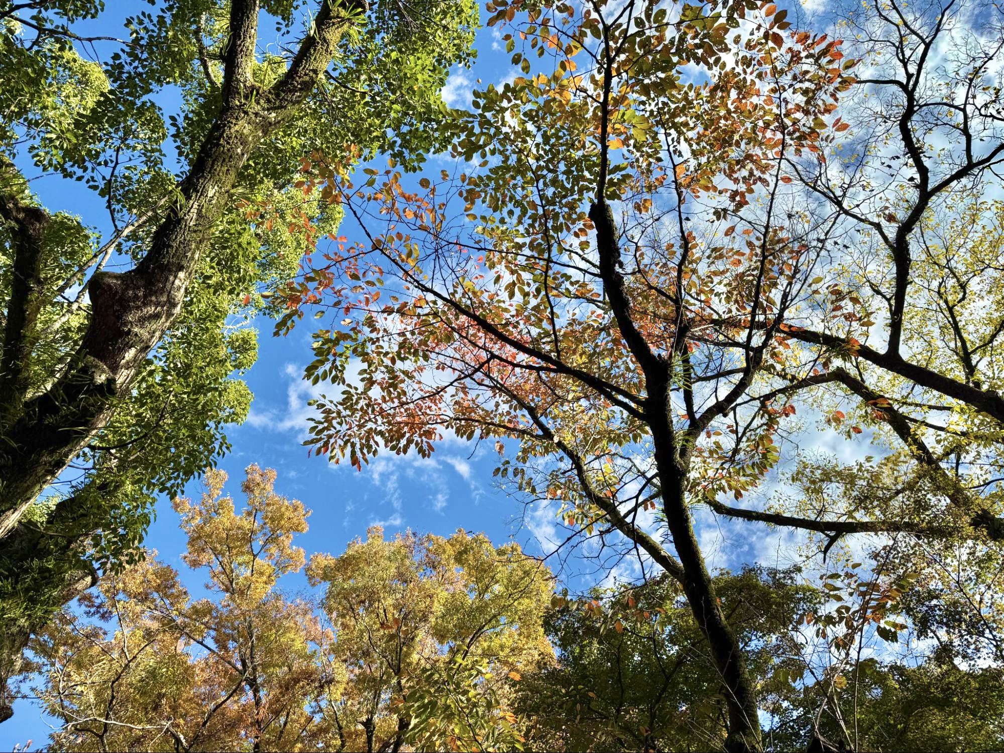 此時的紅葉尚未滿開,卻已足夠驚艷。秋日的楓葉在微風中搖曳,葉片在陽光下泛著火紅與橙黃的層次色澤。雖比預期少了幾分濃烈,但或許正因為如此,才讓人更加記住這個時刻。