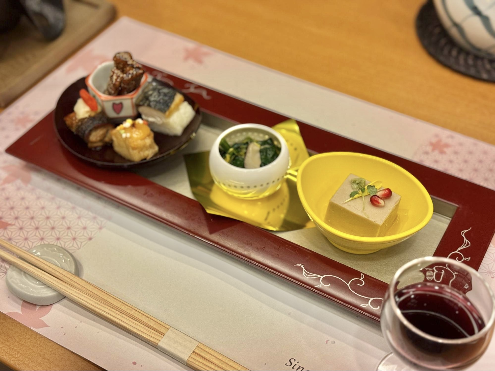 晚餐以岐阜在地食材呈現,一道一道精緻地端上桌,工作人員親切地為我說明每道菜的特色,像在欣賞小型的季節展演。