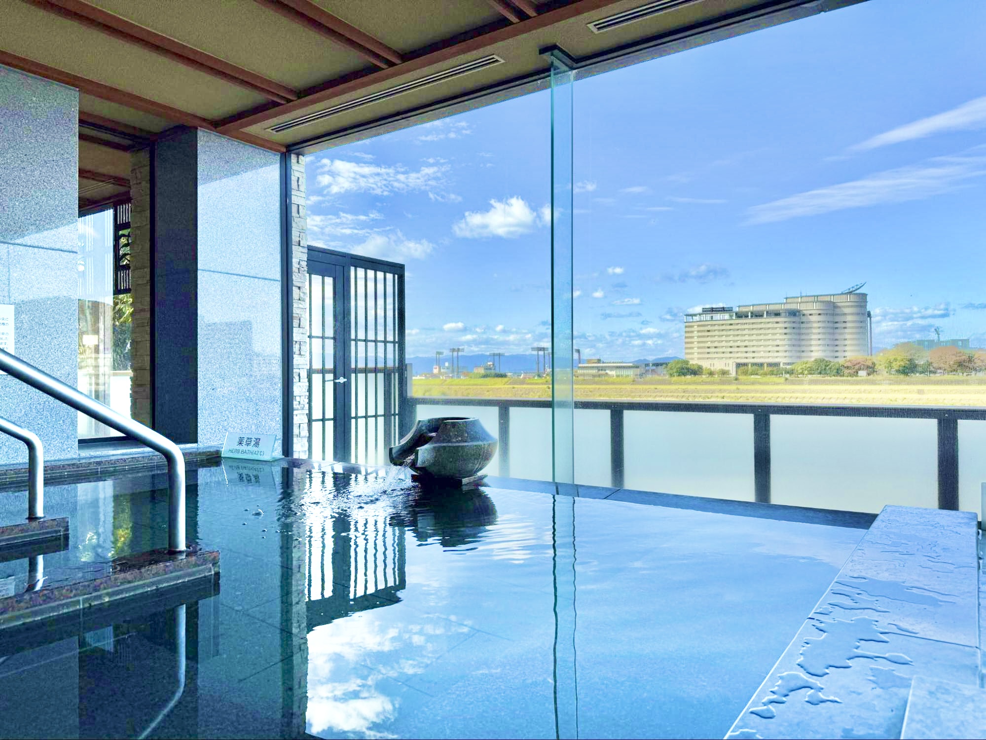 露天風呂的溫泉,溫度舒服得恰到好處,熱氣緩緩包裹身體,感覺一天累積的寒意與疲憊都被蒸散。泡完之後整個人暖到心底,只覺得這個夜晚一定能睡得很好。