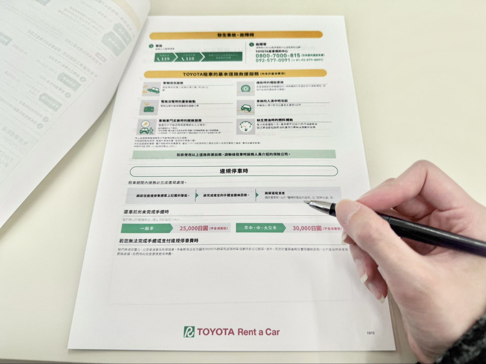 台灣旅人在日本租車的流程非常簡單,只要出示護照、台灣駕照、駕照日文譯本,接著填寫資料、檢查車況,就能完成租車手續即刻出發。