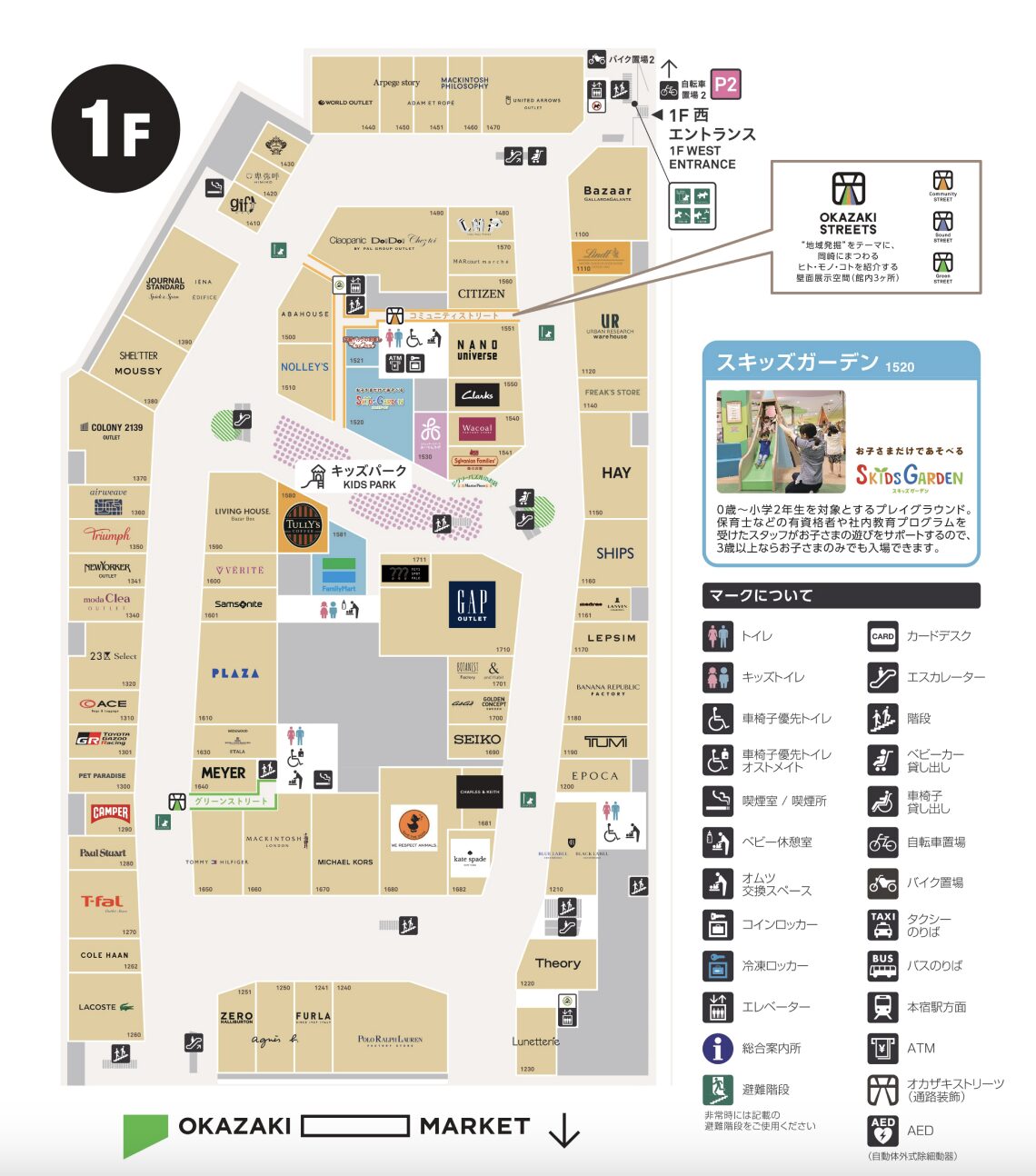 岡崎OUTLET不僅是購物天堂,更是老少咸宜的休閒據點。館內特別設置親子休息區、哺乳室與兒童遊戲場,甚至還有付費的室內遊樂園「Skids Garden」,讓家長能輕鬆安排半日遊。