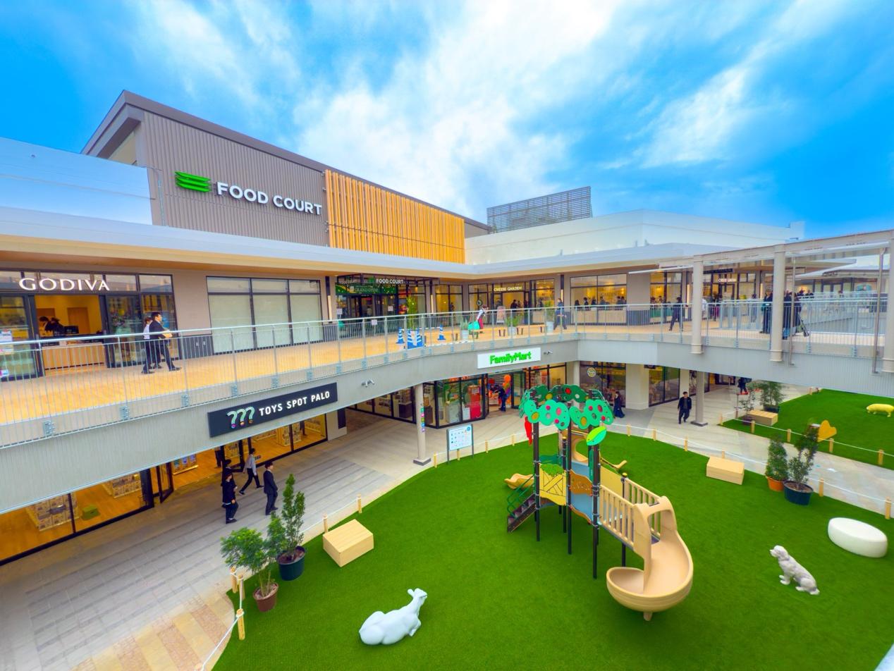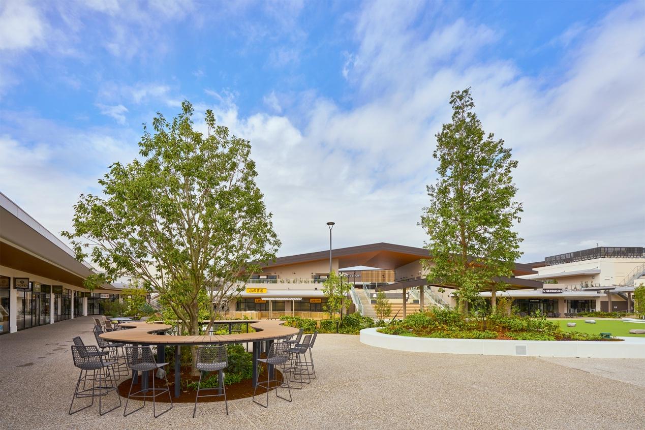與以往OUTLET的「水泥建築」印象不同,三井OUTLET PARK岡崎採用「OKAZAKI MARKET」概念設計——將購物、綠地與市集文化融合在一起,打造出開放式的公園型空間。