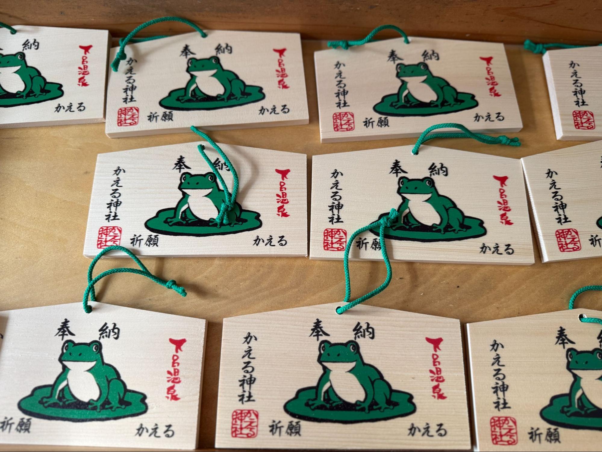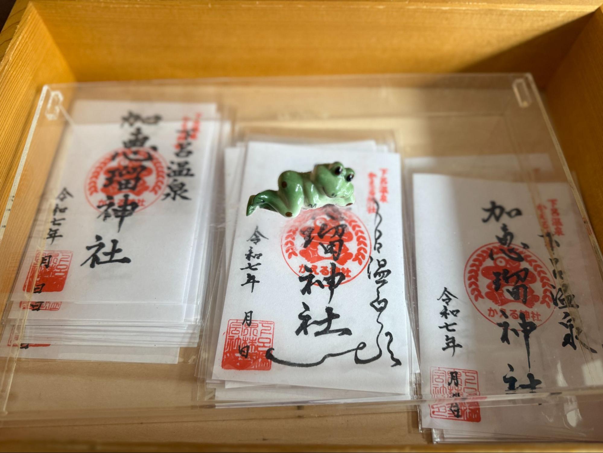 連繪馬與御朱印都是青蛙主題,木片上的青蛙圖案超可愛,而御朱印也以青蛙為主視覺,是下呂獨有的風景。