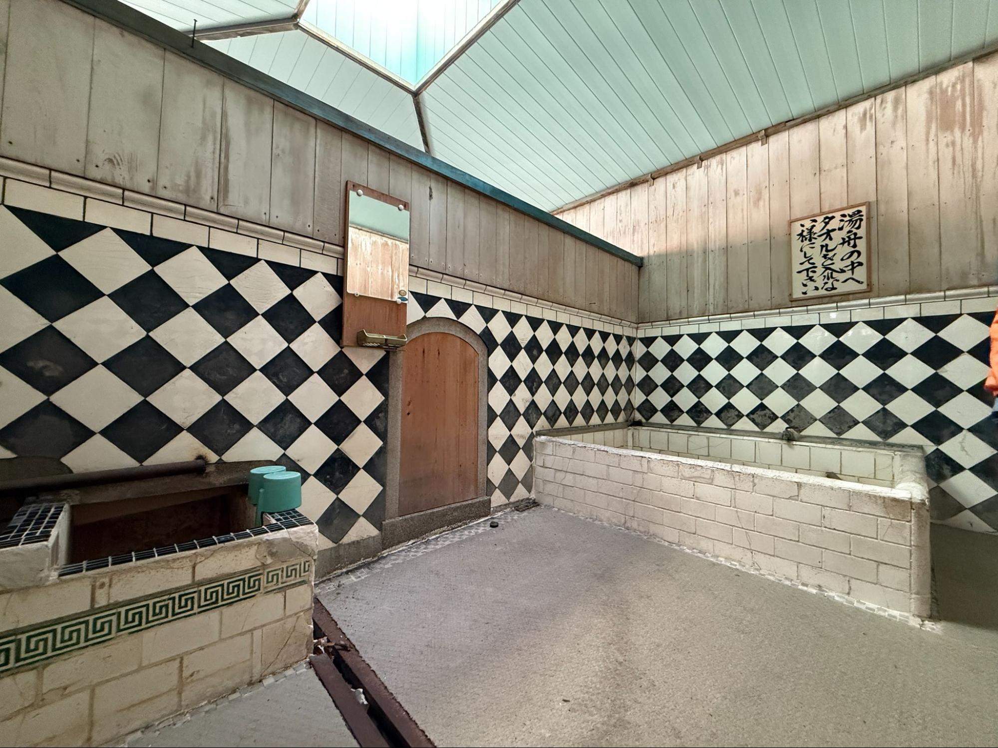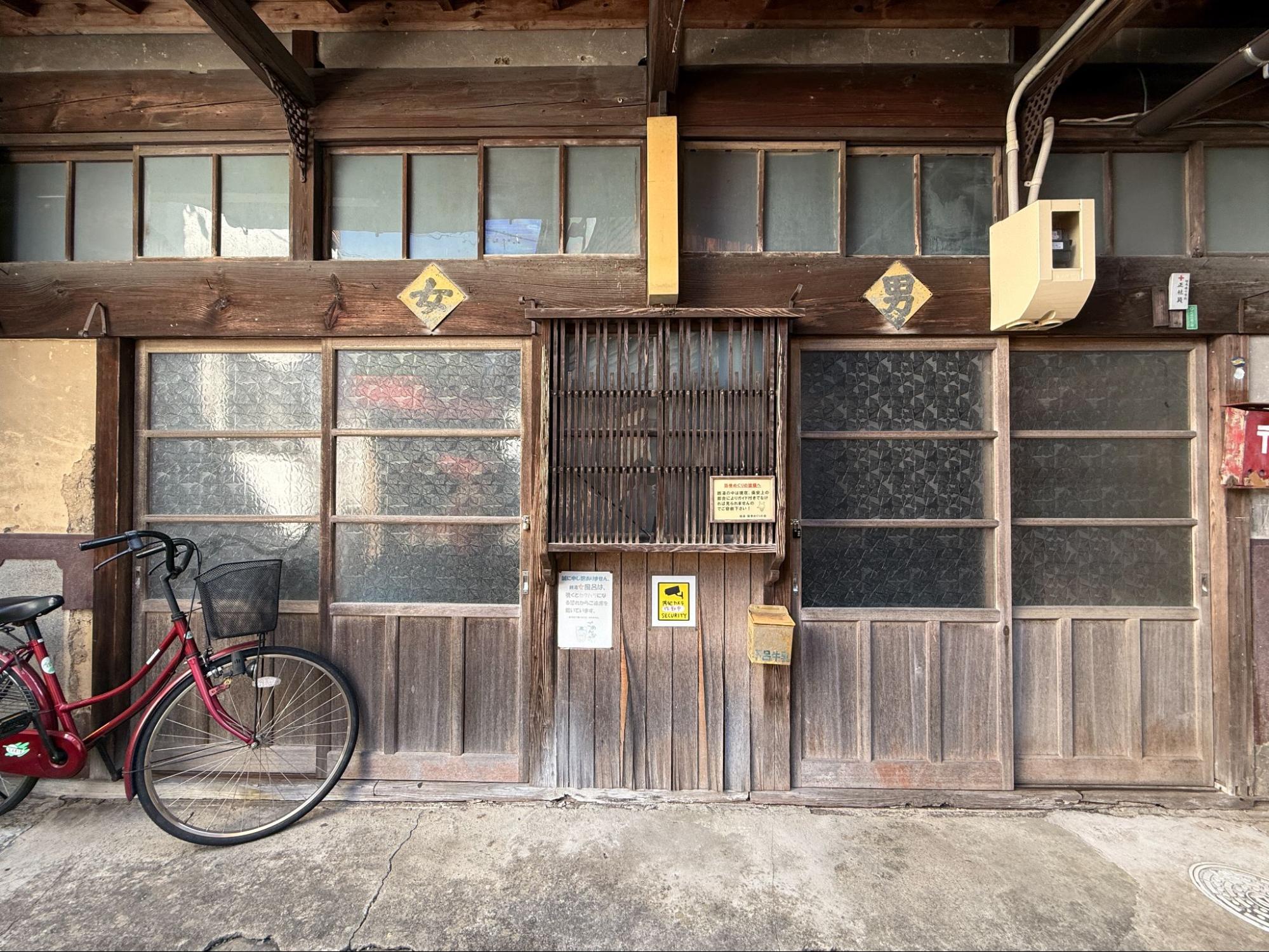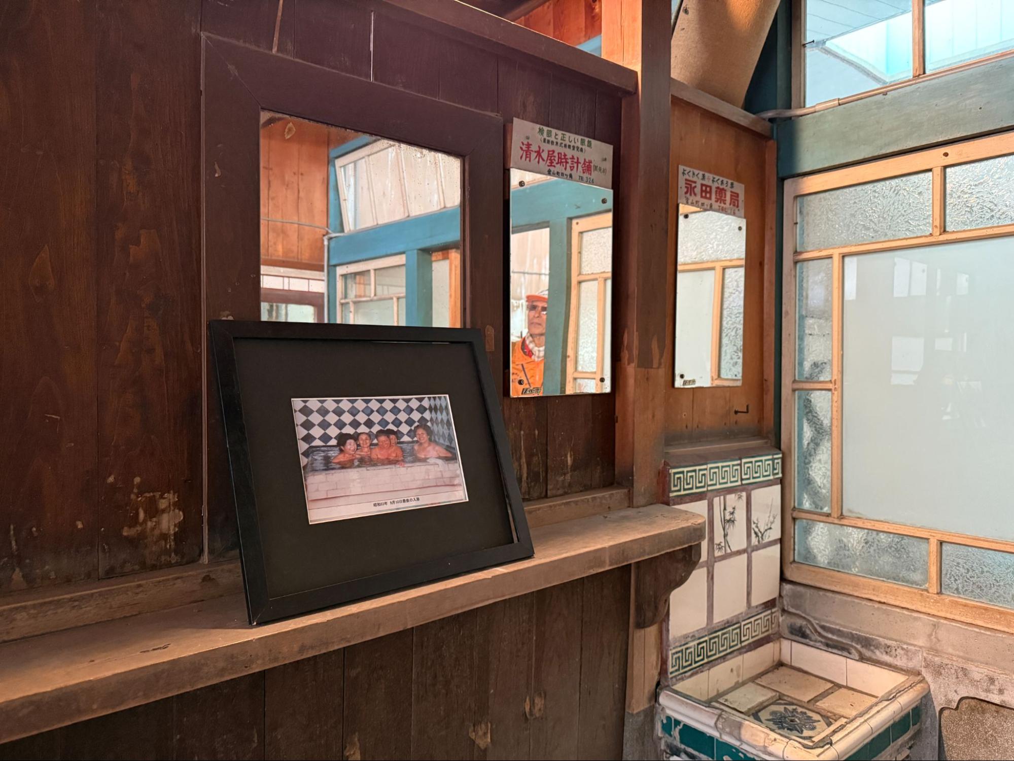 隨著導遊穿梭於小巷之中,來到已停業但保存完善的「昭和時代錢湯」。木製的更衣櫃、昔日的垂吊風扇與蒸汽通道仍在,牆上仍貼著當年「不可以偷看女生洗澡喔!」、「標準體重表」等標語,讓人不禁莞爾一笑。