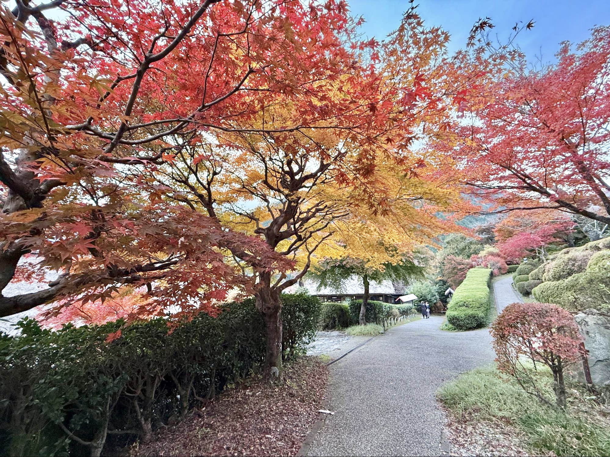 自駕是前往下呂最迷人的方式,通往下呂溫泉的車程,道路蜿蜒穿過山谷與森林,兩側的楓樹與銀杏已染上秋色,金黃與深紅在山風中閃爍,鋪出一條通往名湯的路。沿途可以感受山色流轉與光影變化,車窗外的景色像幅不斷延展的畫。握著方向盤的手,也掌握旅程的節奏。